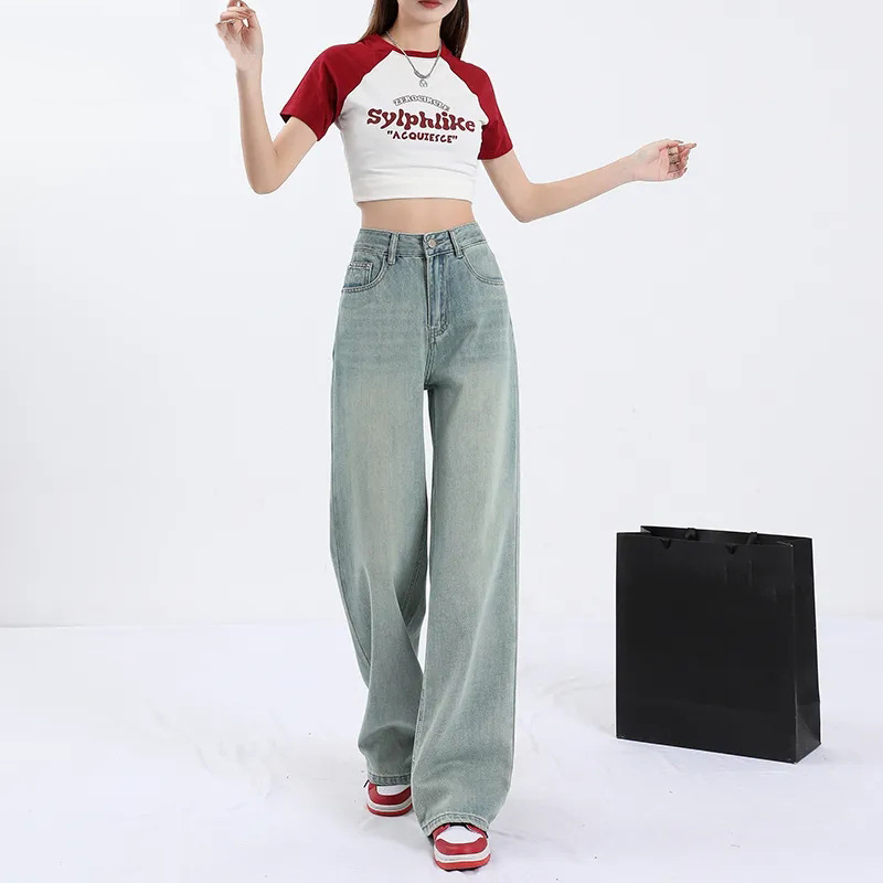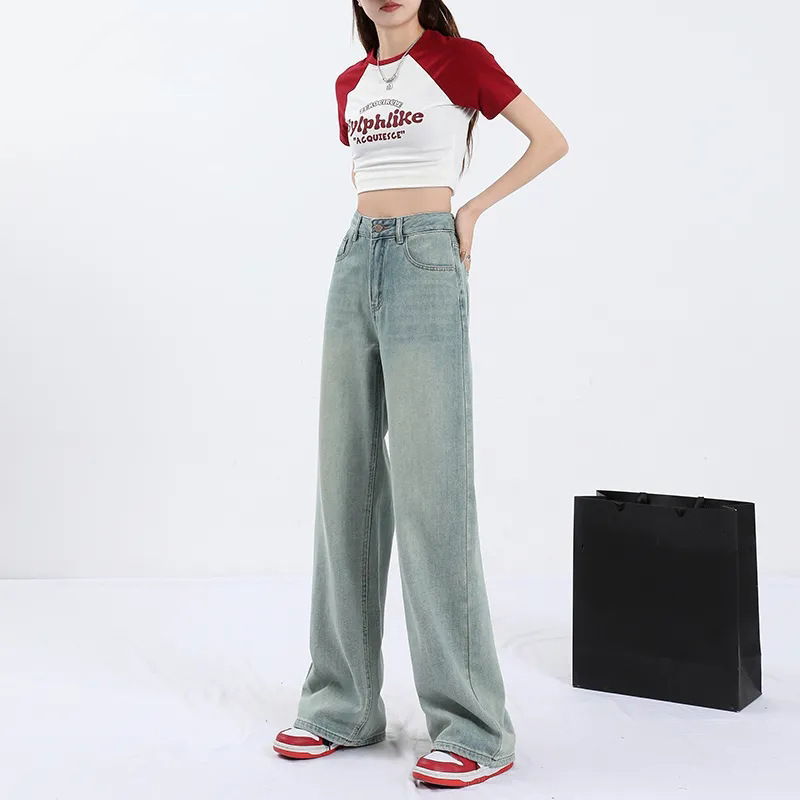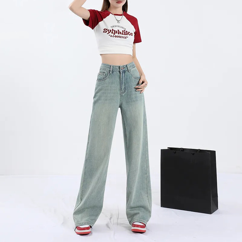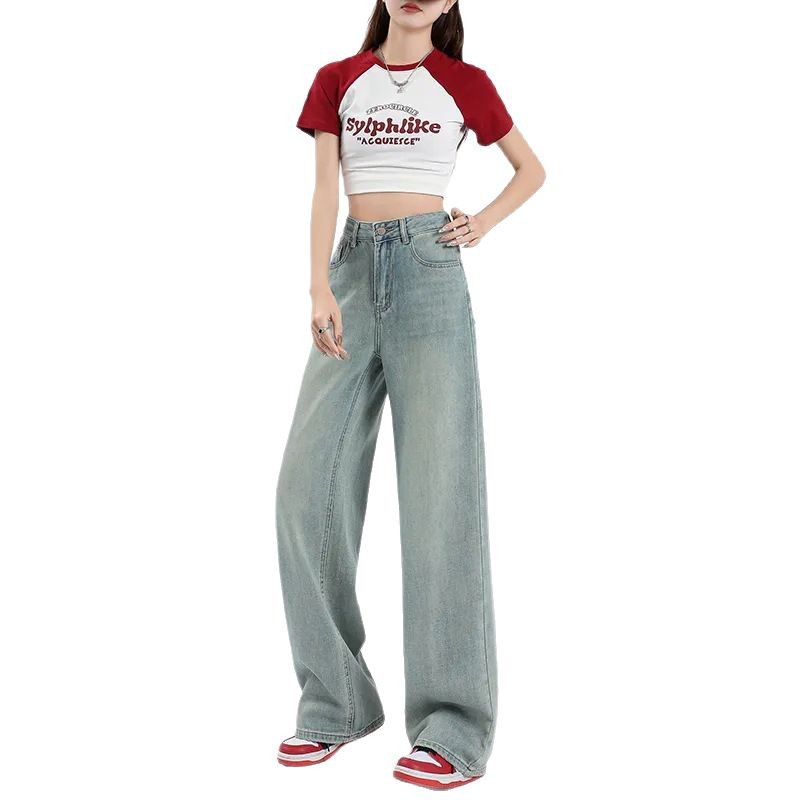 浅色高腰牛仔裤女春夏2025新款韩版直筒宽松显瘦垂感拖地阔腿裤子