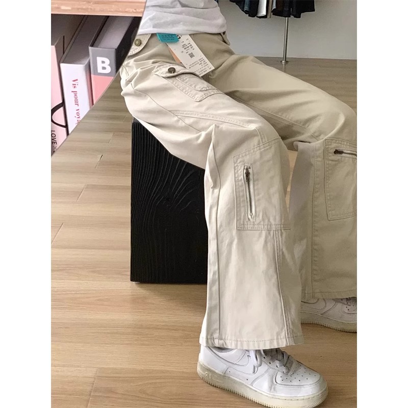 2025春季美式微喇裤工装牛仔裤女胖mm宽松高腰显瘦直筒阔腿拖地裤