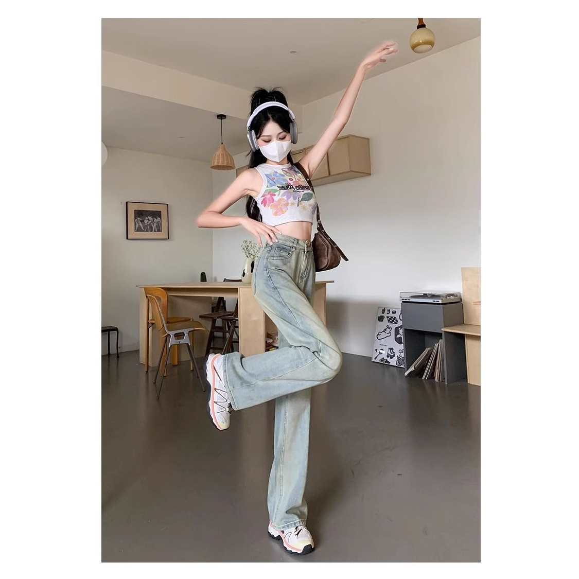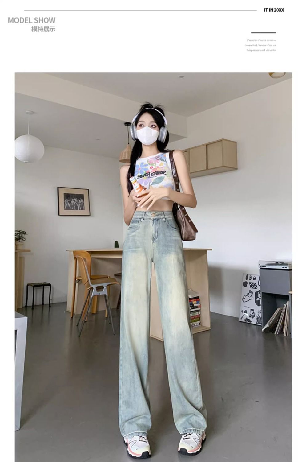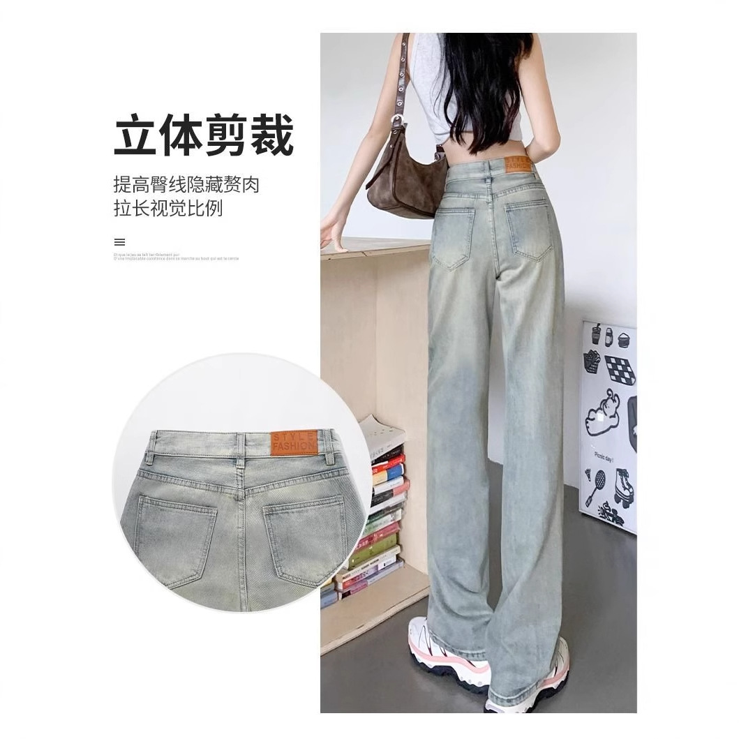 做旧牛仔裤女宽松阔腿裤复古薄款2025新款ins潮显瘦高腰直筒裤子