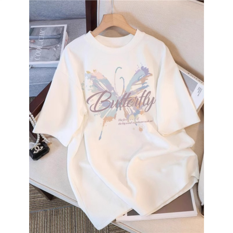 大码上衣圆领短袖t恤女2025夏季新款爆款蝴蝶印花设计感时尚百搭