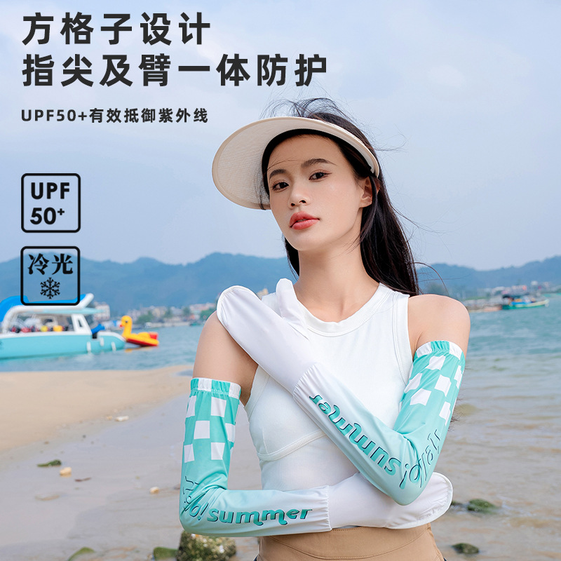 方格冰袖防晒袖套女夏季薄款防紫外线冰丝手袖护臂手臂套袖开车