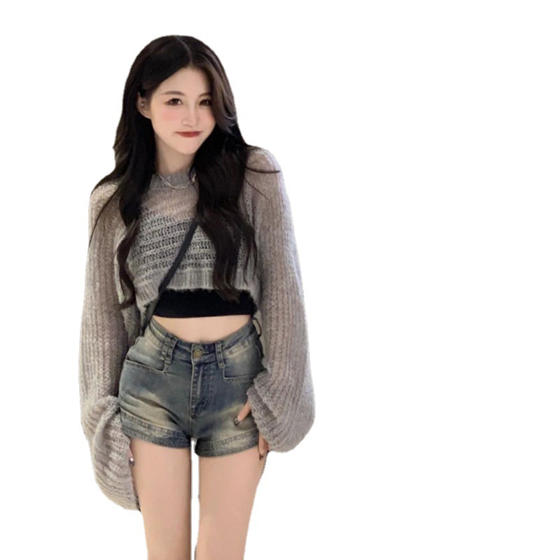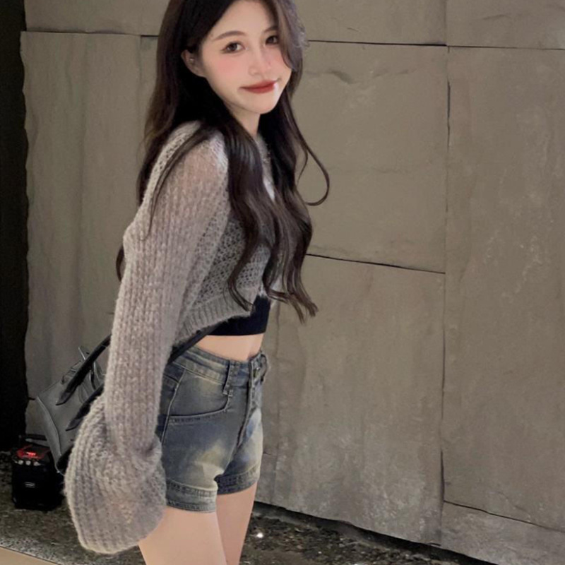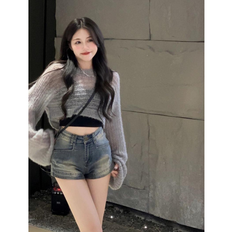 橙娟女装#复古甜酷风弹力牛仔短裤女春夏新款宽松显瘦五分裤