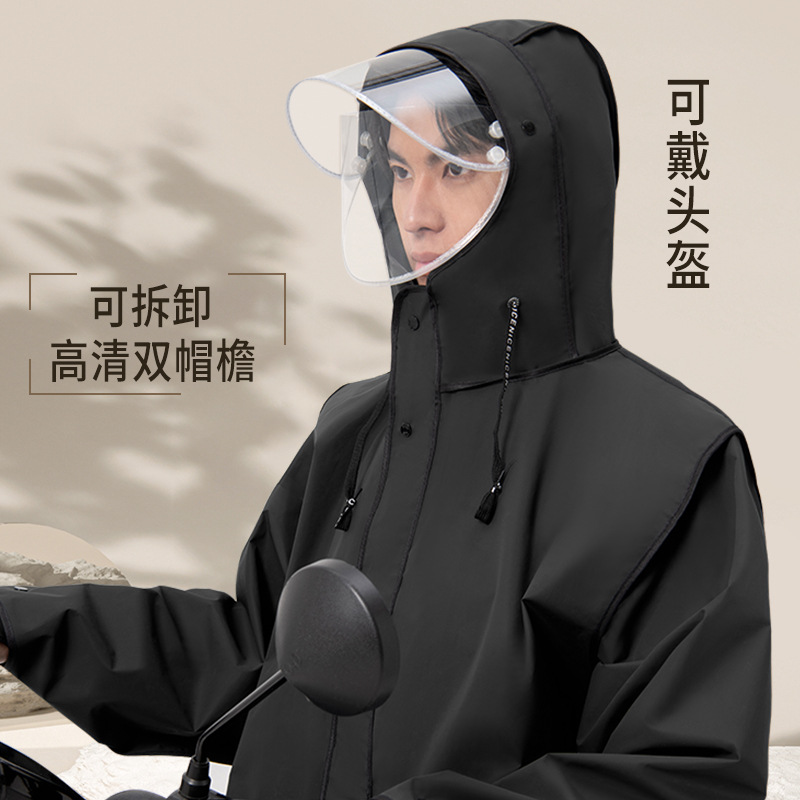 加厚款防暴雨雨衣长款双帽檐雨披夏季户外背包骑行雨披