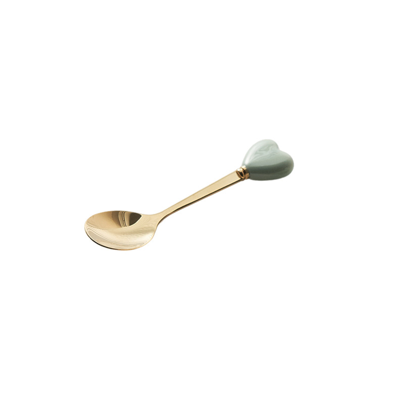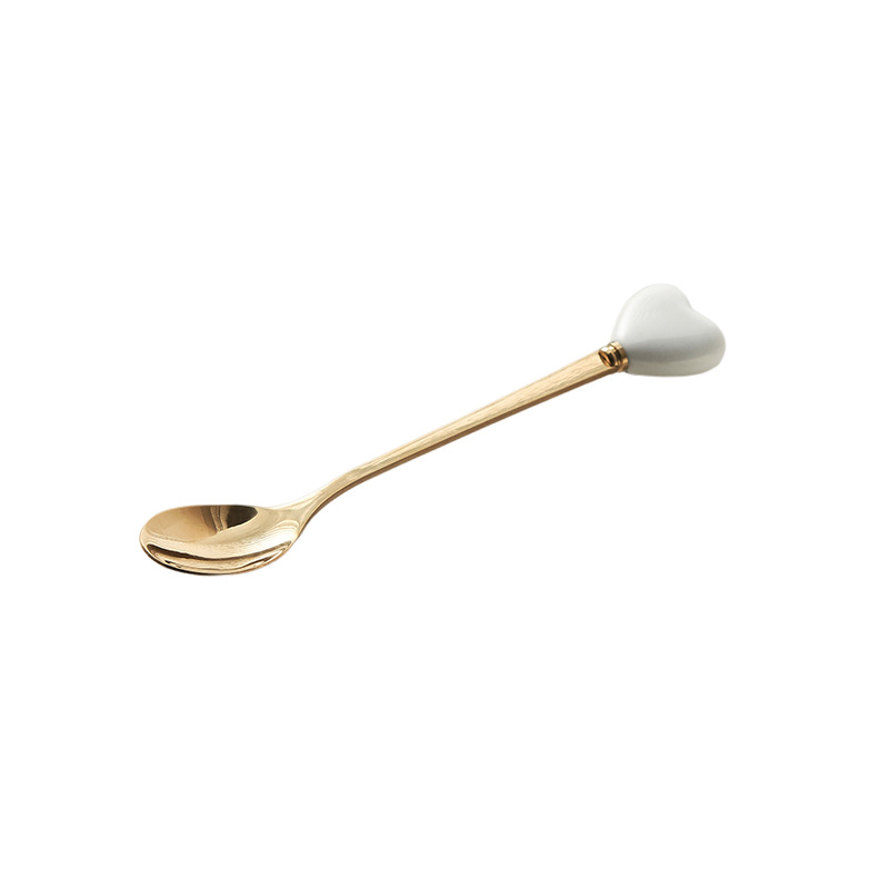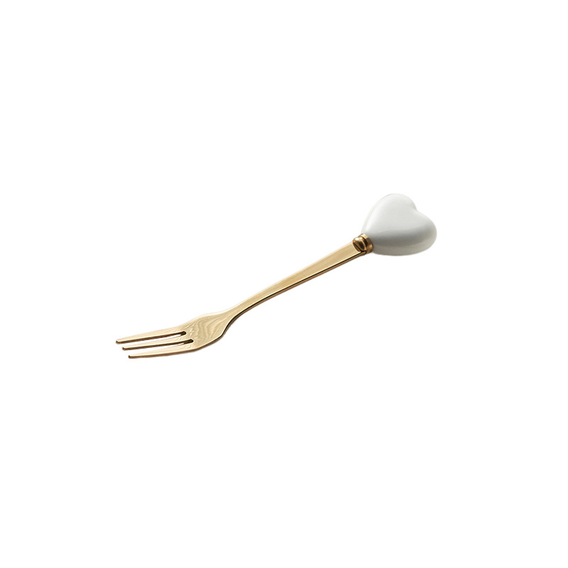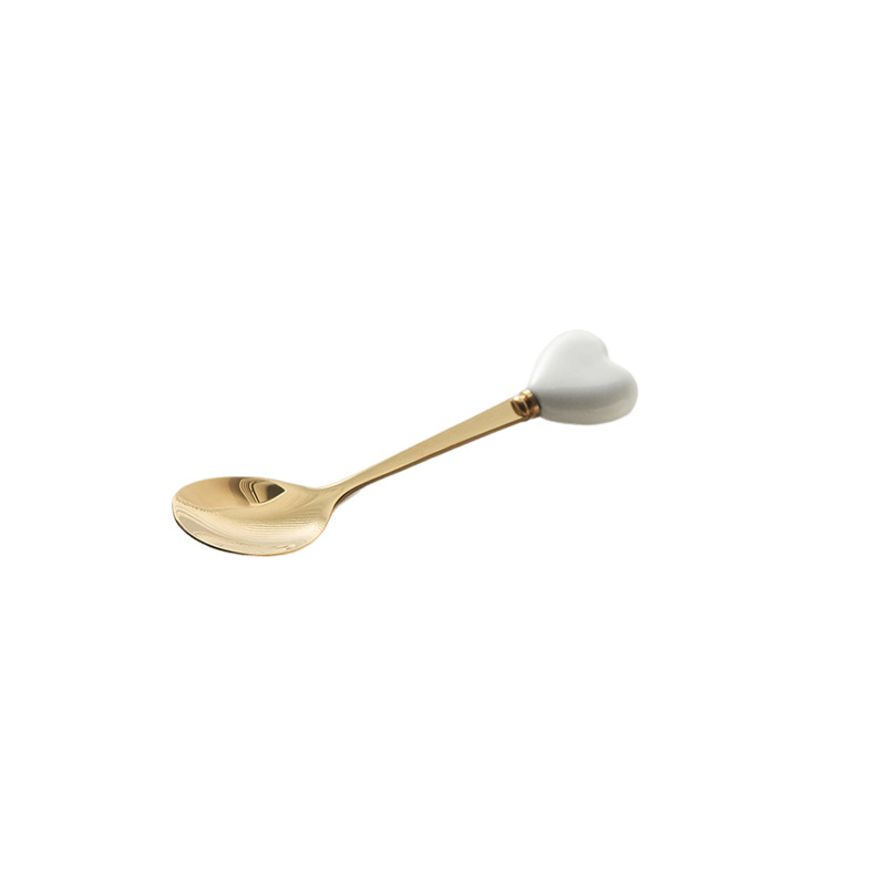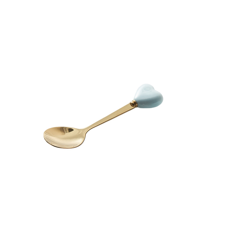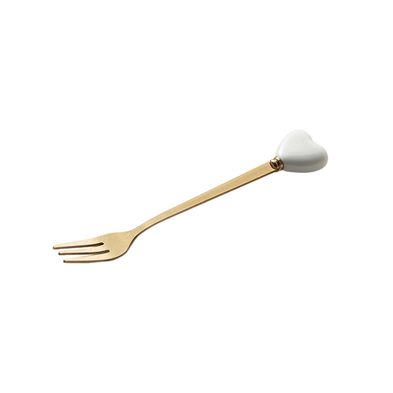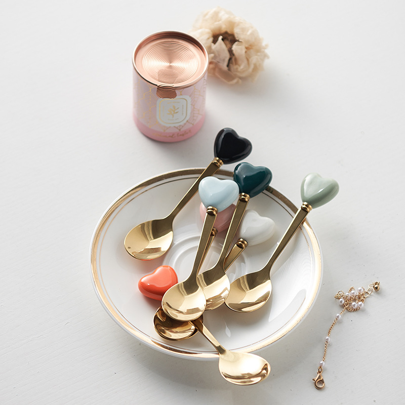 轻奢陶瓷勺子不锈钢咖啡勺下午茶蛋糕甜品勺跨境高颜值小叉子汤勺
