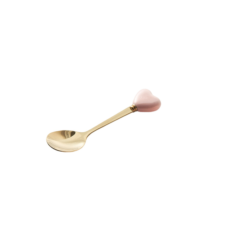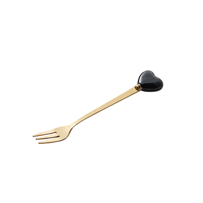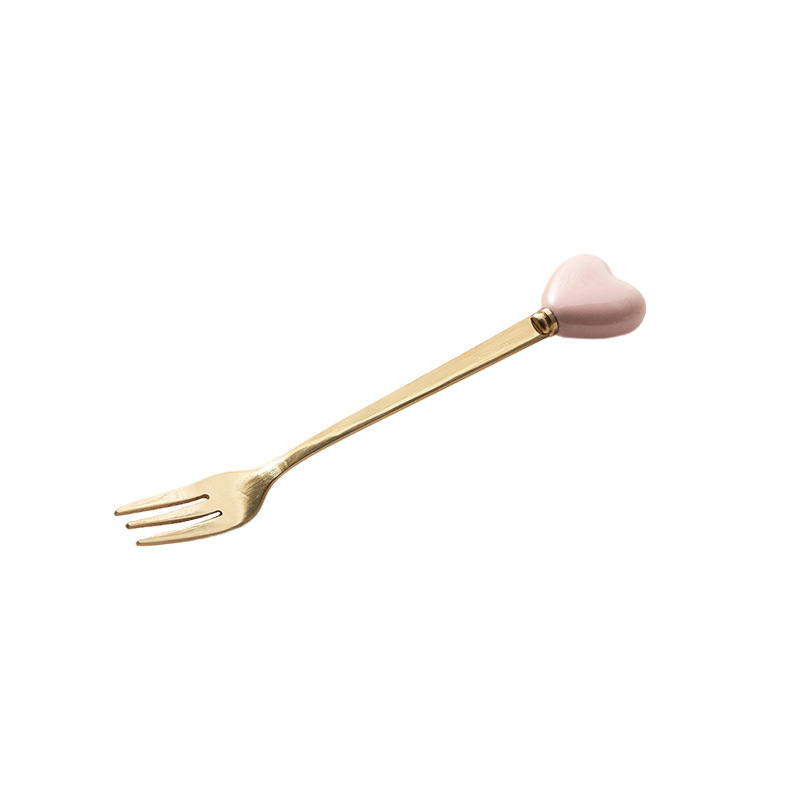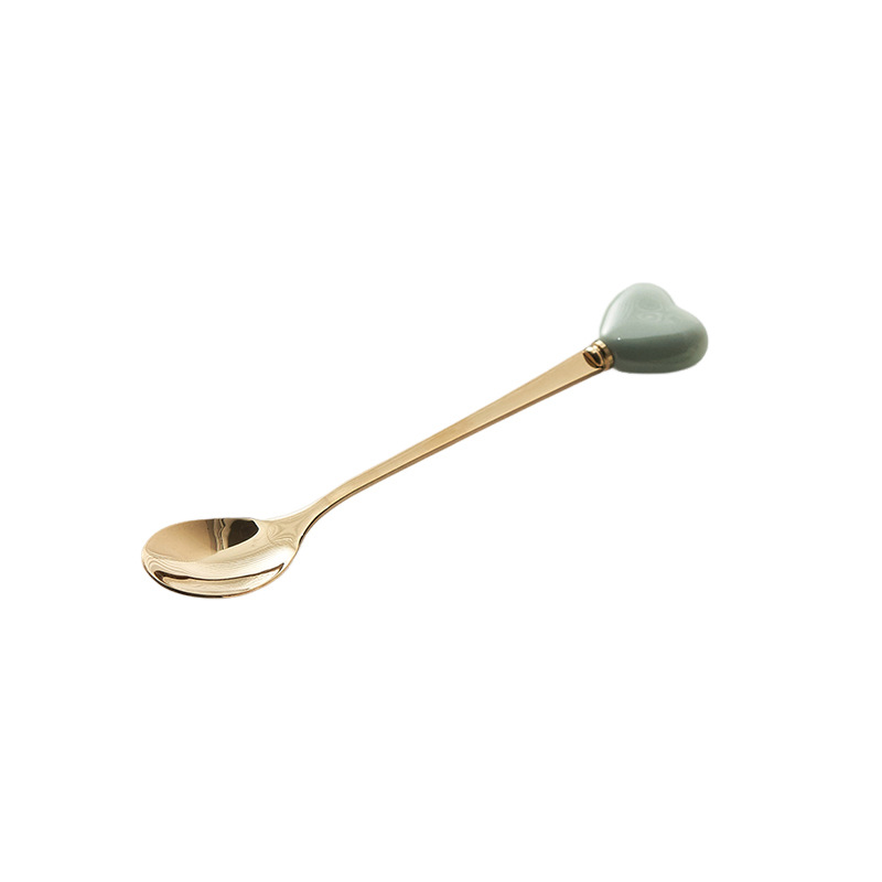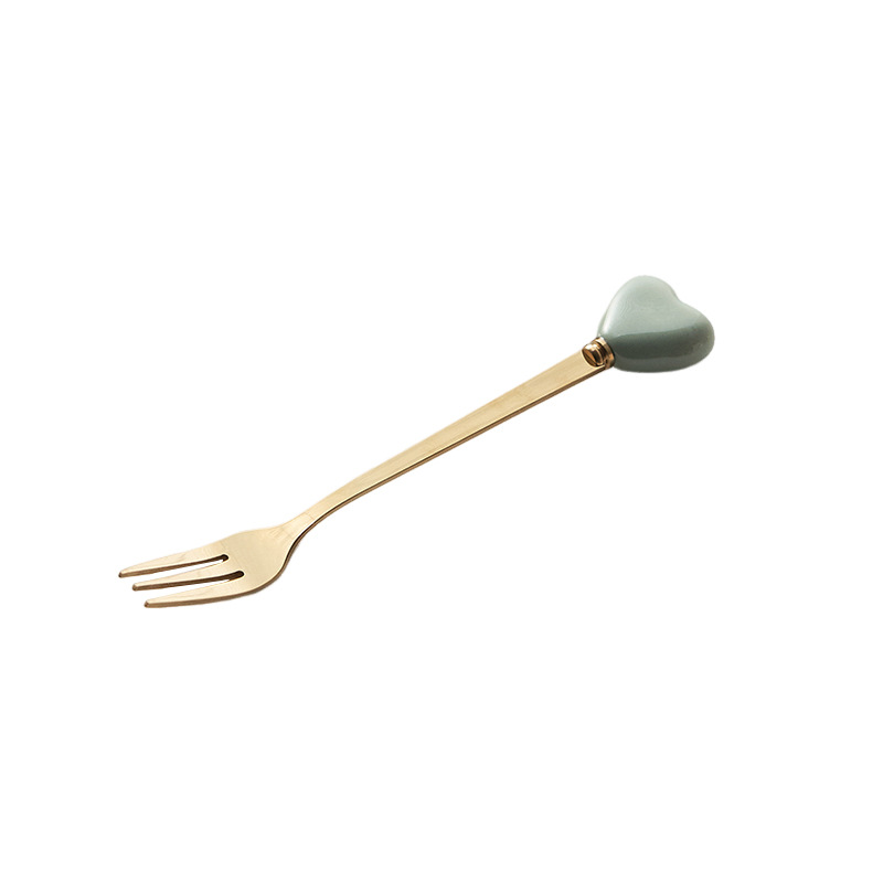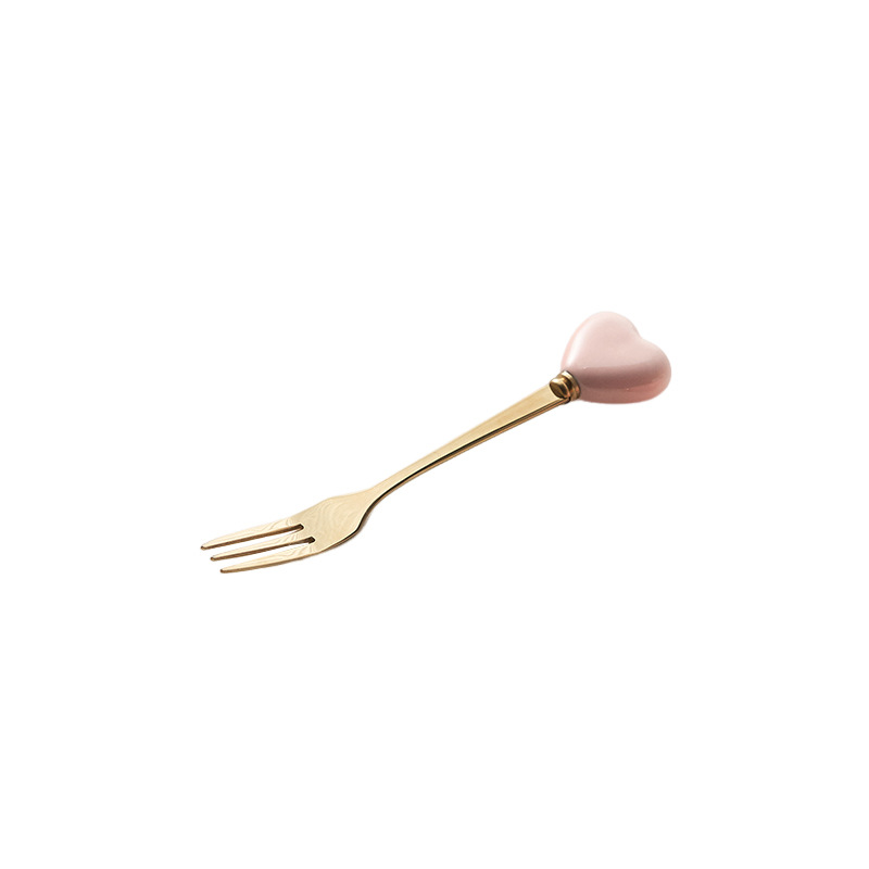轻奢陶瓷勺子不锈钢咖啡勺下午茶蛋糕甜品勺跨境高颜值小叉子汤勺
