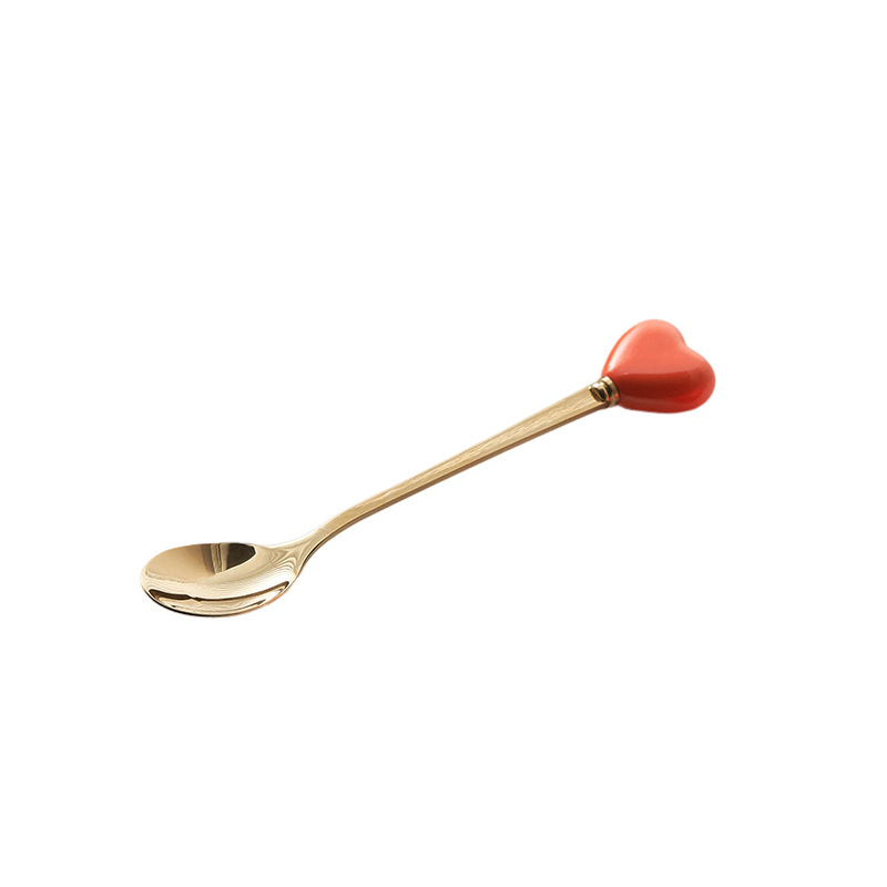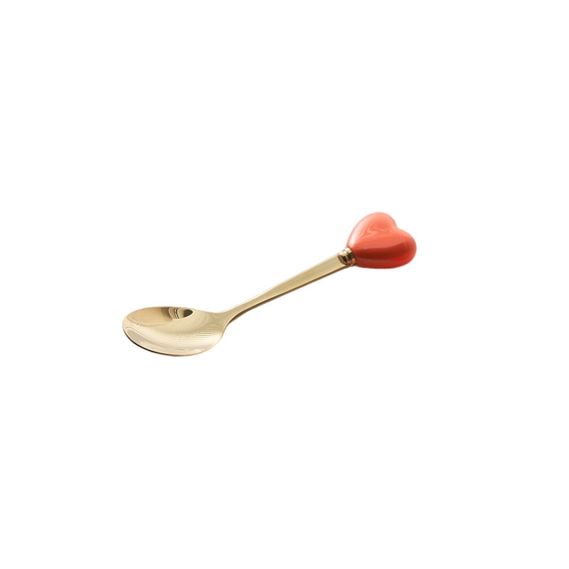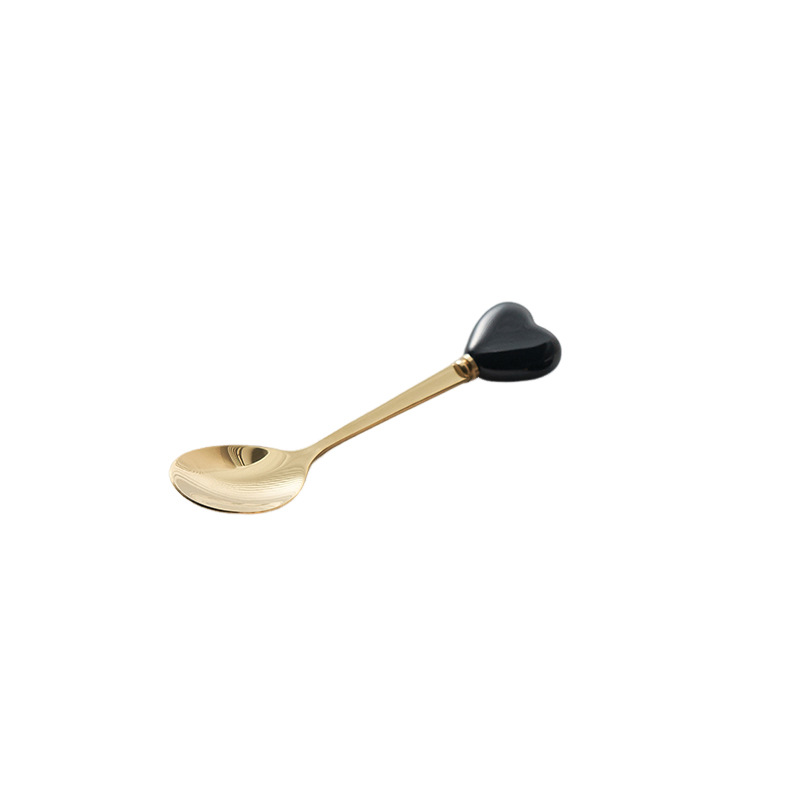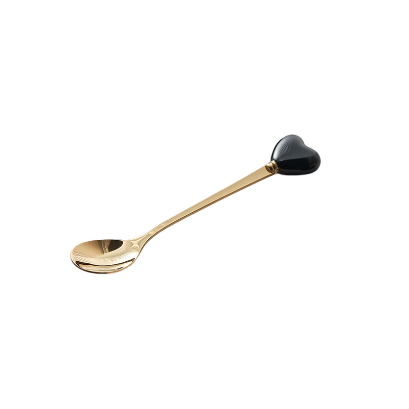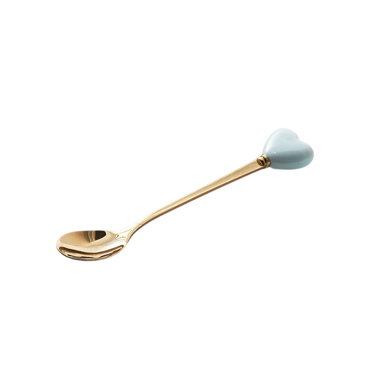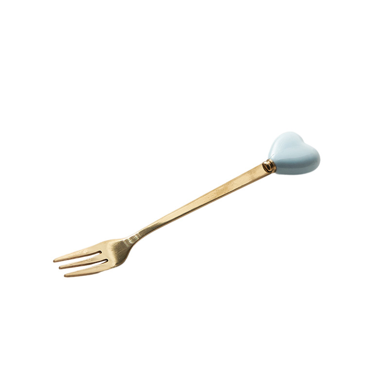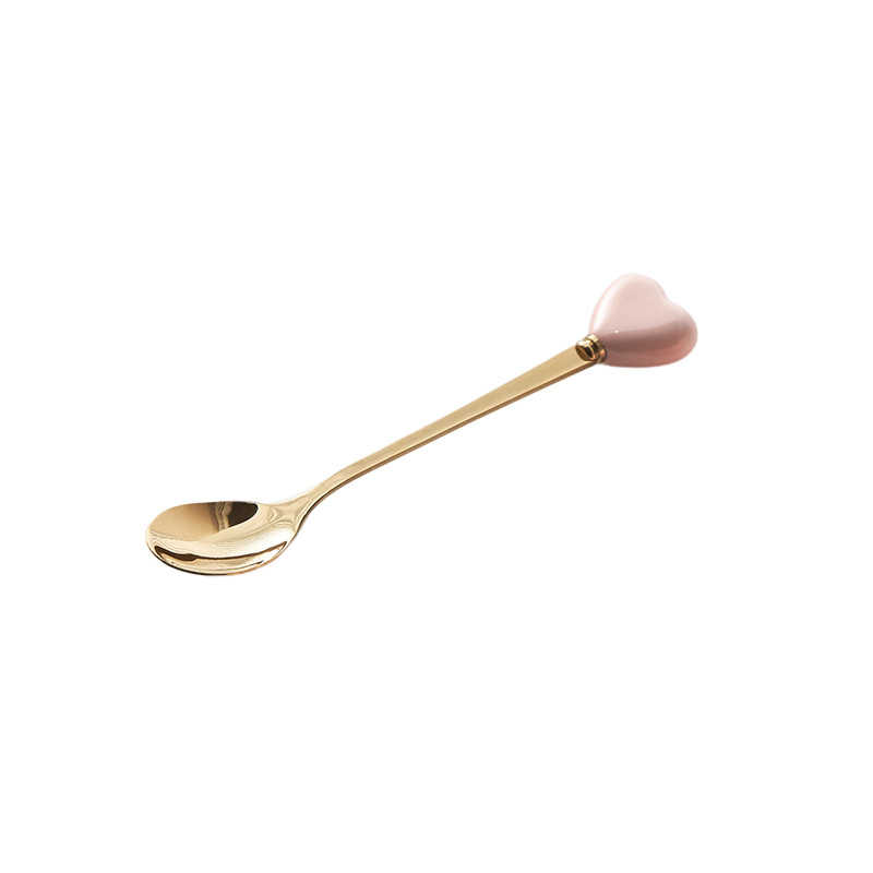 轻奢陶瓷勺子不锈钢咖啡勺下午茶蛋糕甜品勺跨境高颜值小叉子汤勺