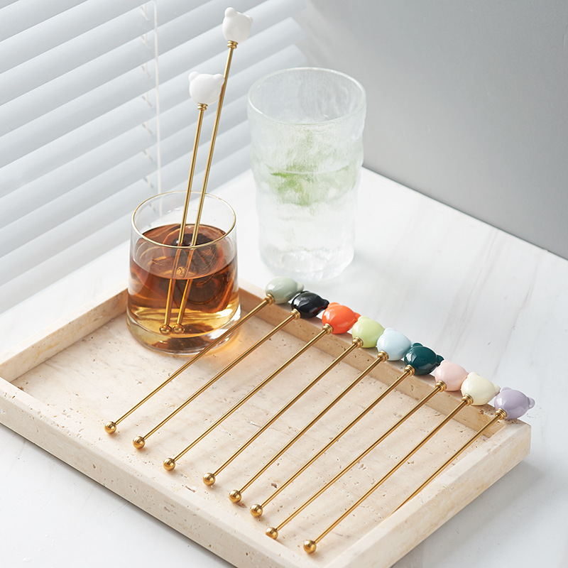 304不锈钢茶饮咖啡搅拌棒多色甜品签家用高颜值陶瓷柄搅奶棒