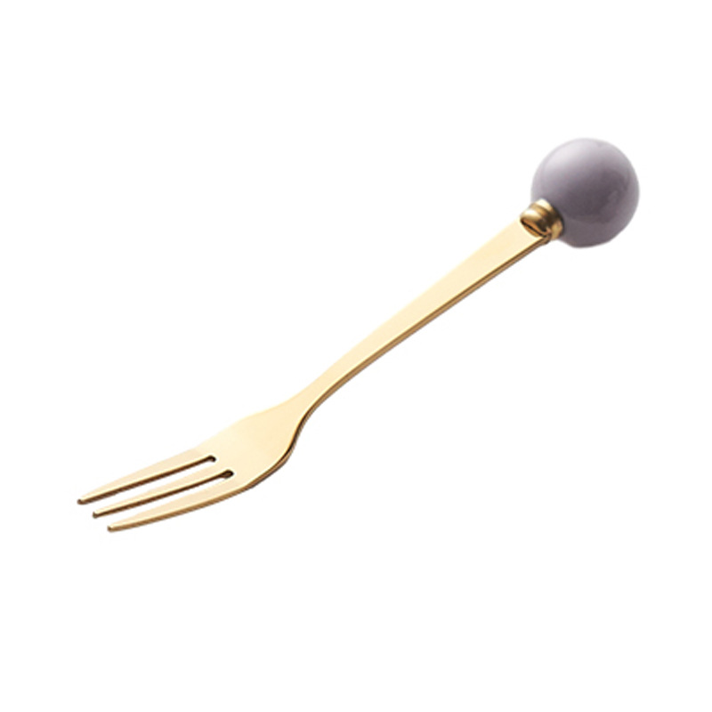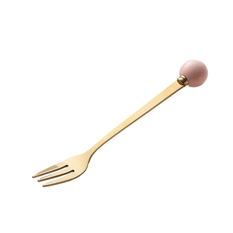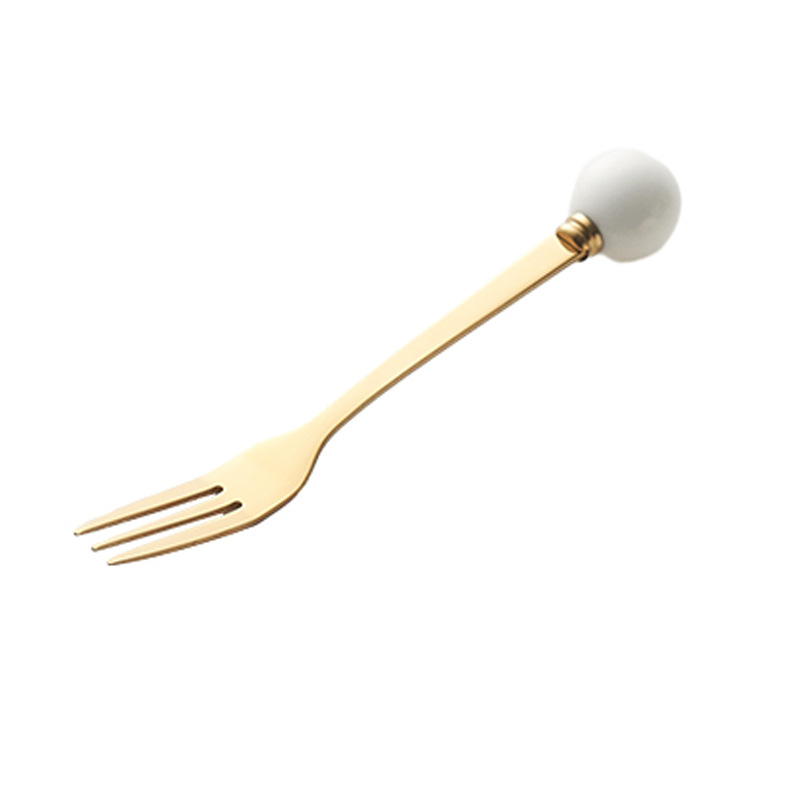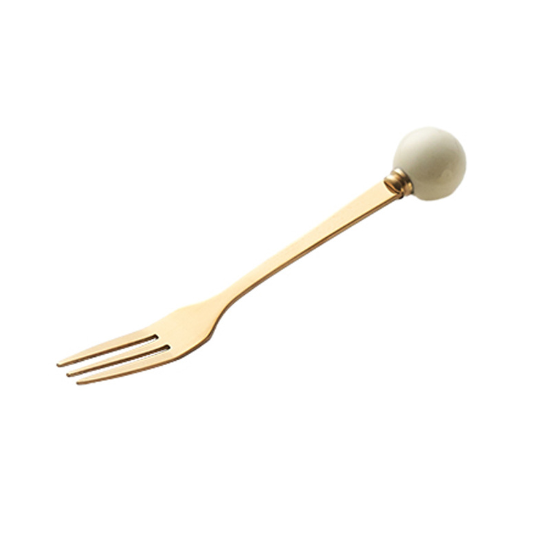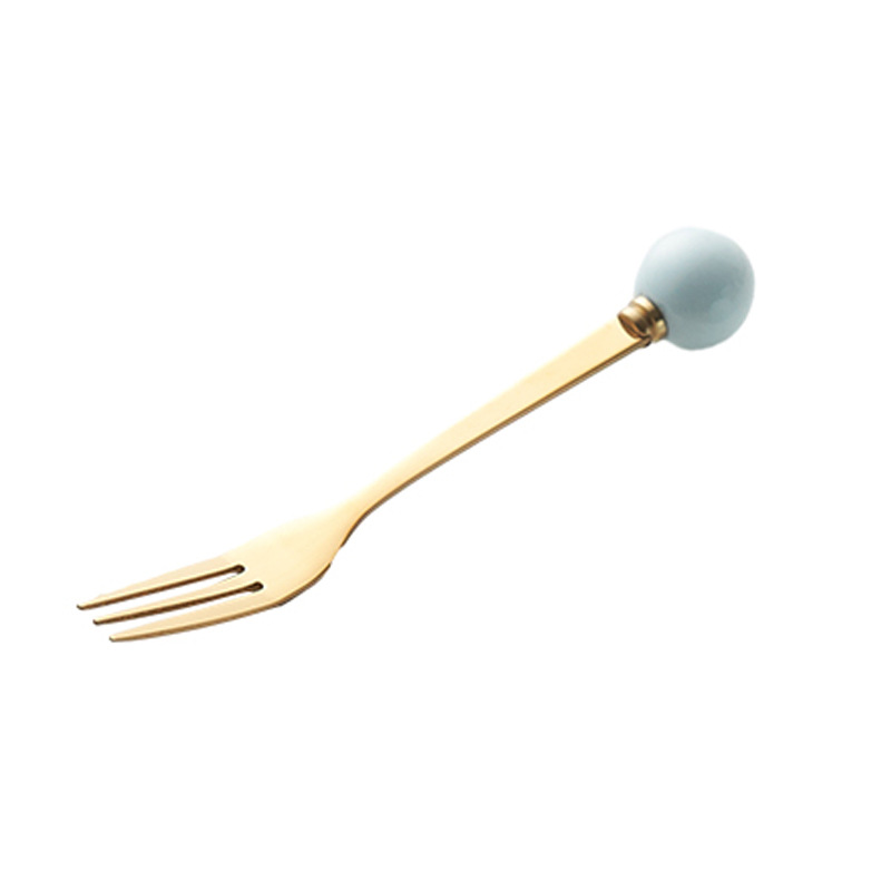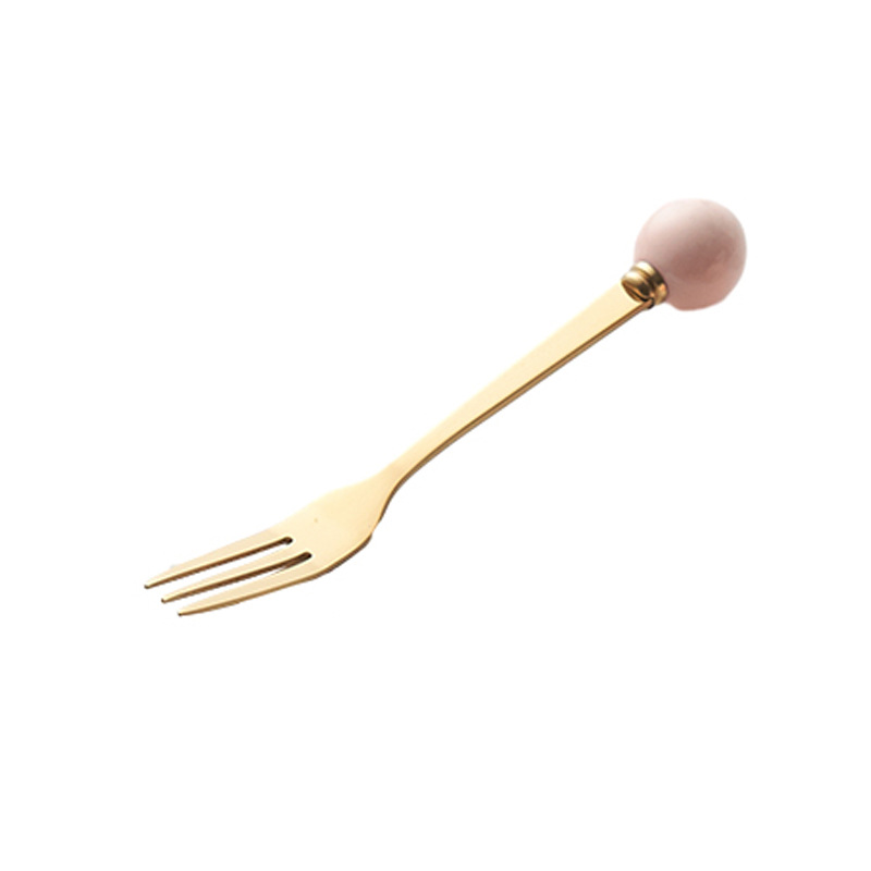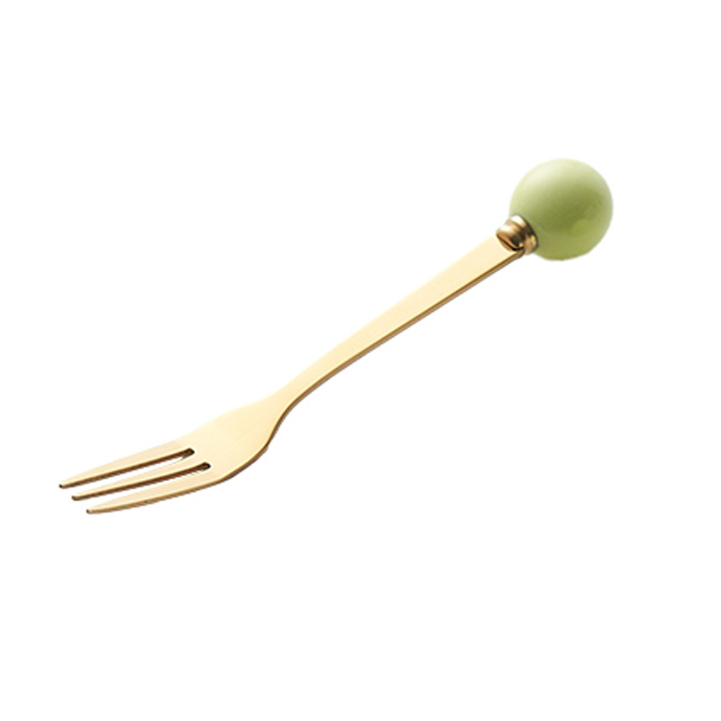 简约马卡龙色釉陶瓷手柄水果叉创意不锈钢叉勺高颜值家用甜品勺子