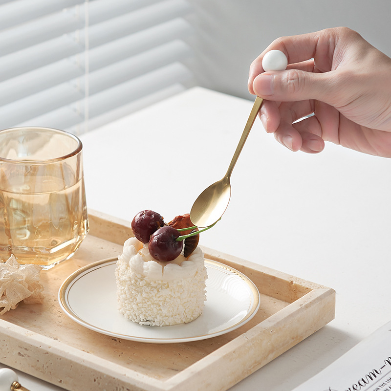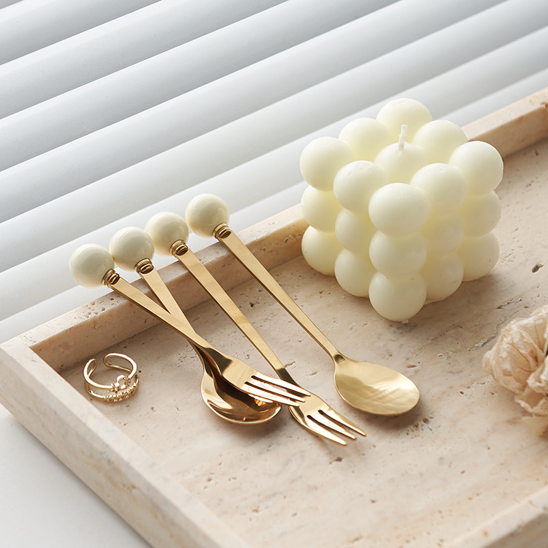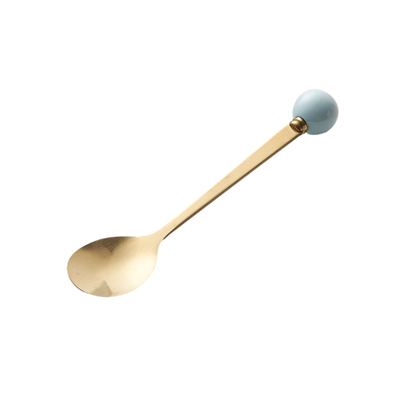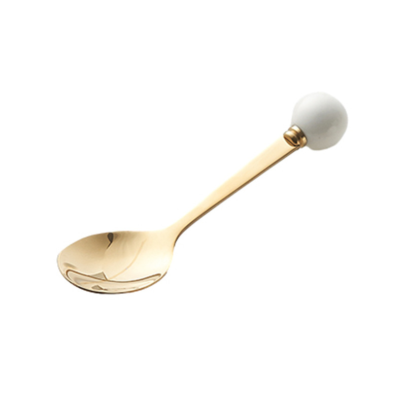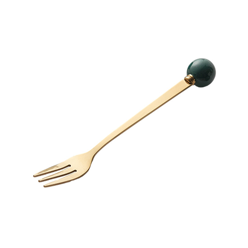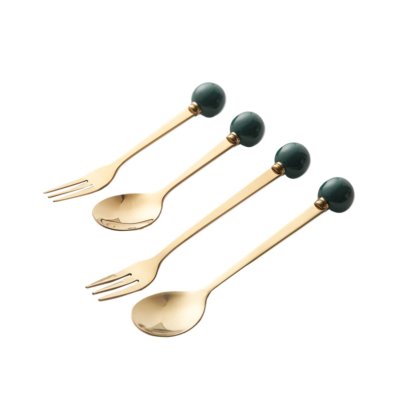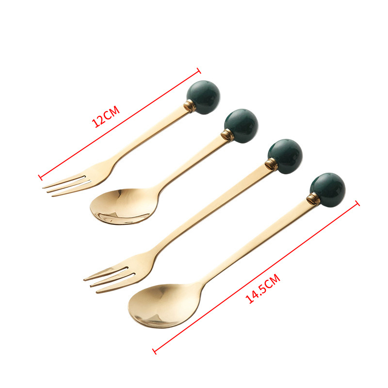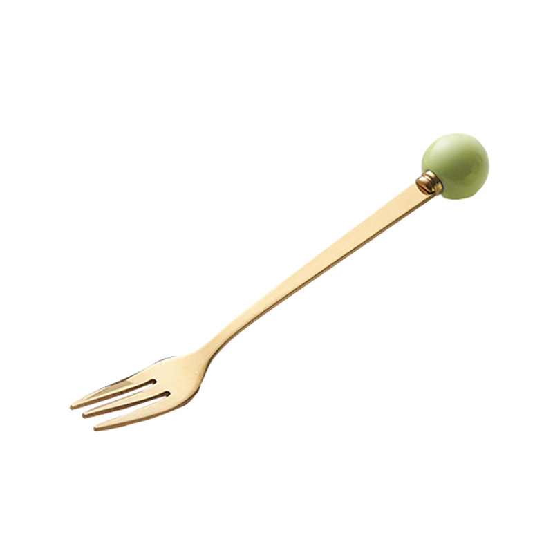 简约马卡龙色釉陶瓷手柄水果叉创意不锈钢叉勺高颜值家用甜品勺子