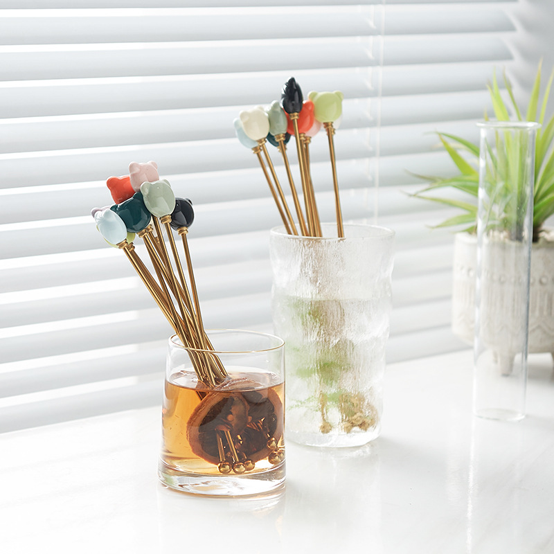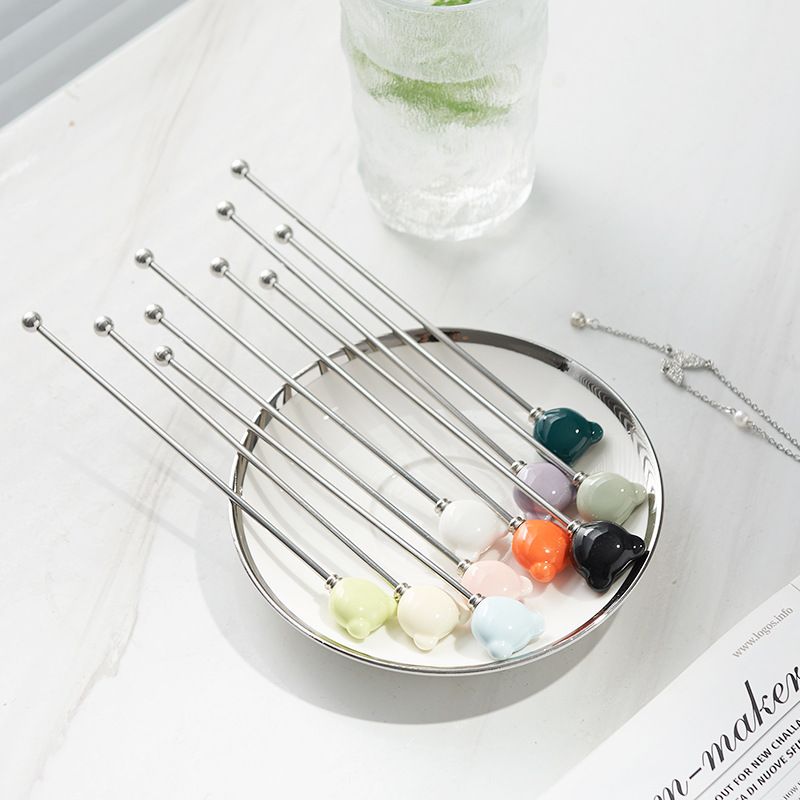 糖果色陶瓷熊头搅拌棒防烫高颜值咖啡搅拌勺高颜值304不锈钢酒棒