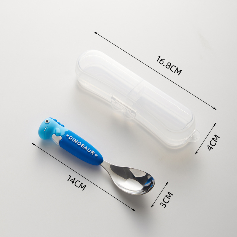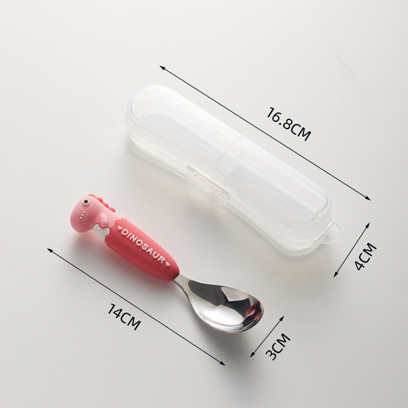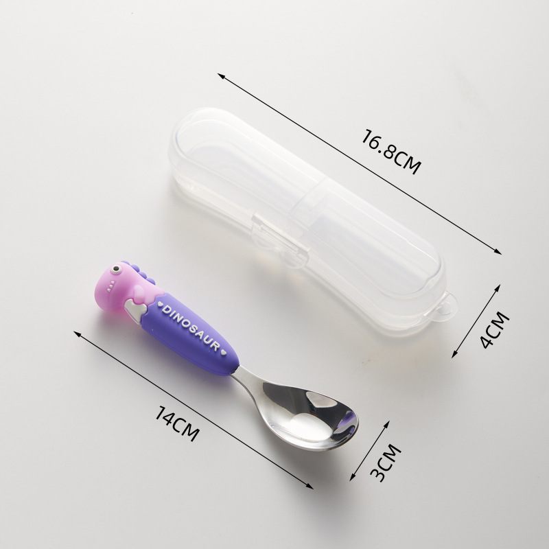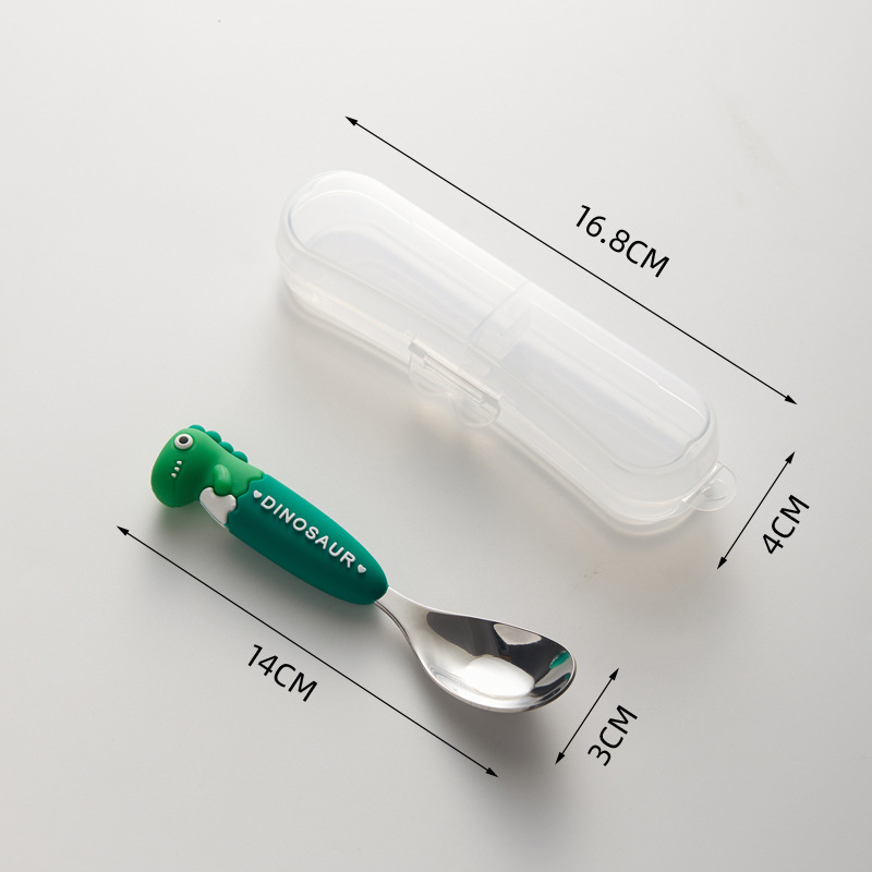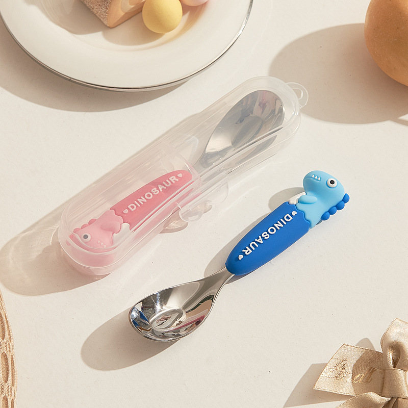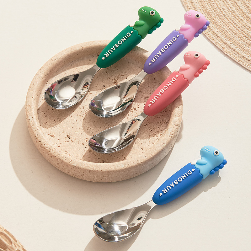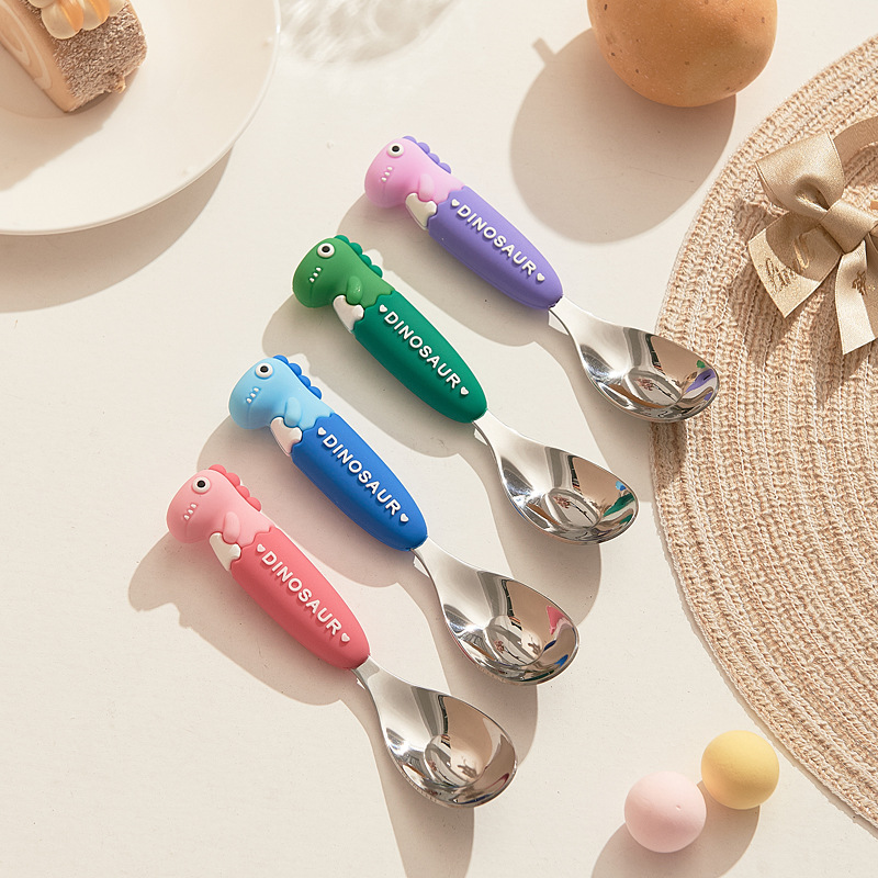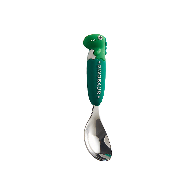 新款创意卡通恐龙软柄儿童元宝勺子可爱风不锈钢调羹学生餐具