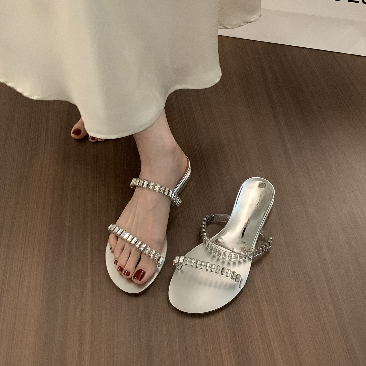 网红坡跟水钻拖鞋仙女鞋子新款夏季气质配裙子法式小凉拖凉鞋