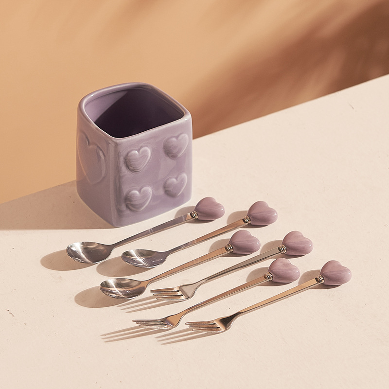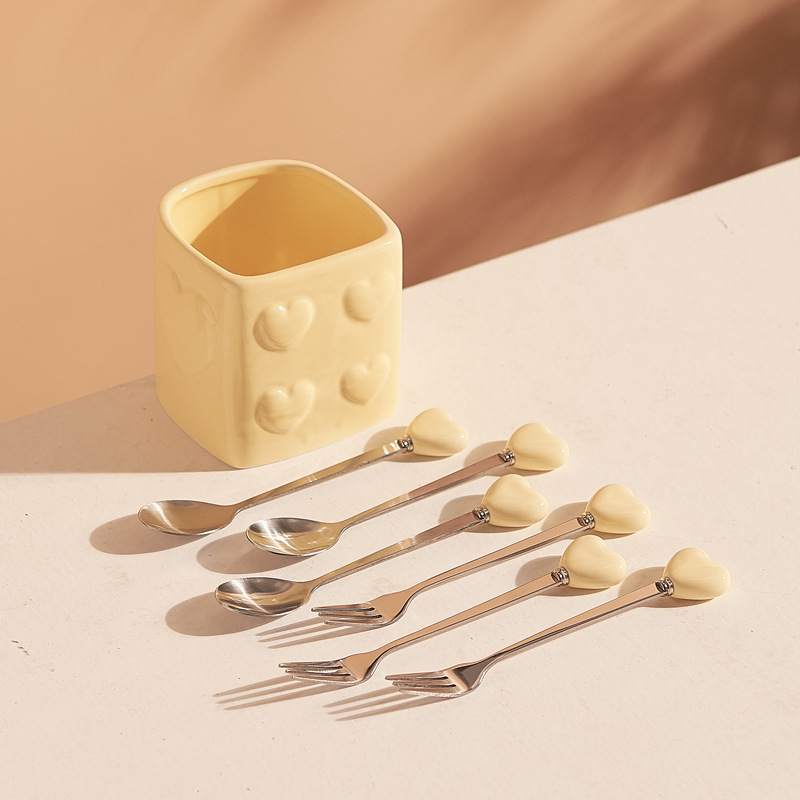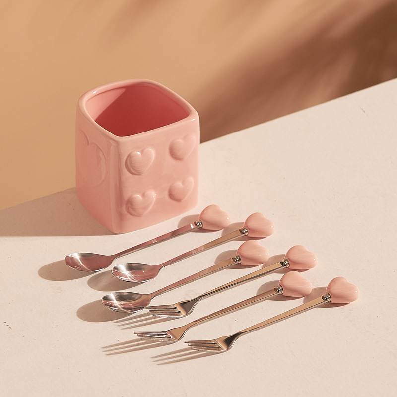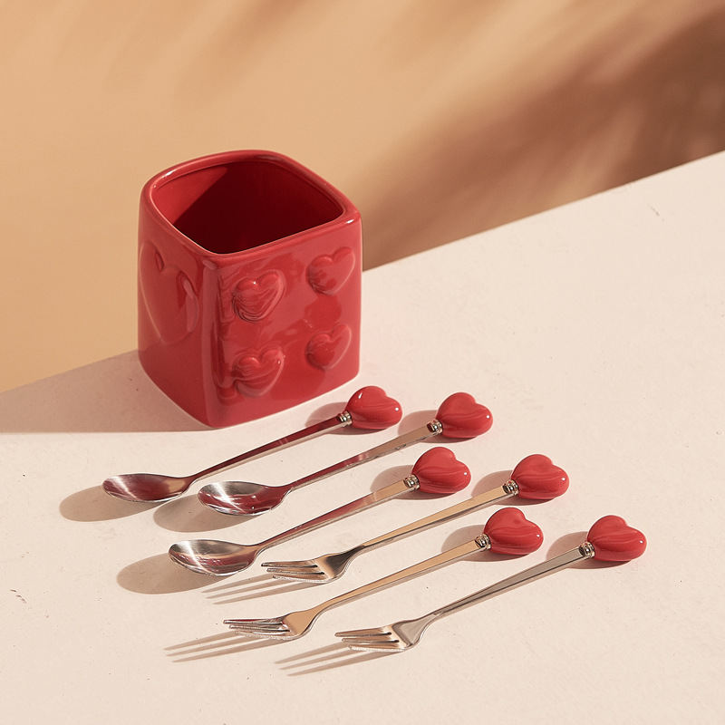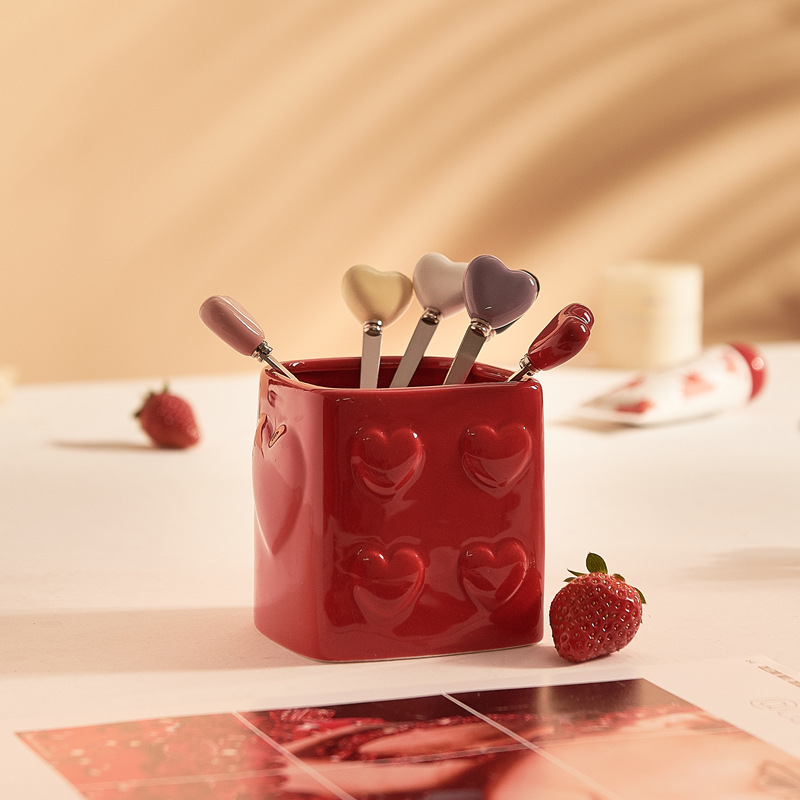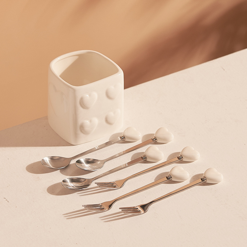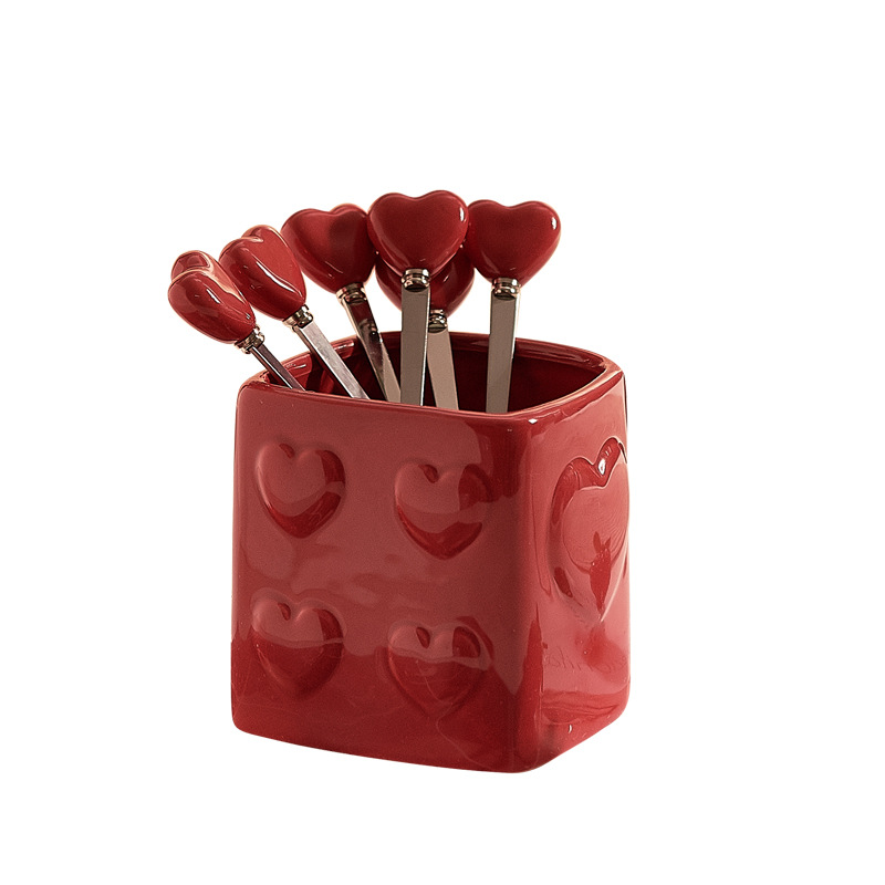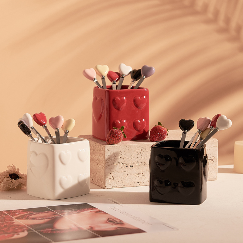 心形陶瓷水果叉套装精致下午茶酒店餐厅高颜值装扮果签收纳罐