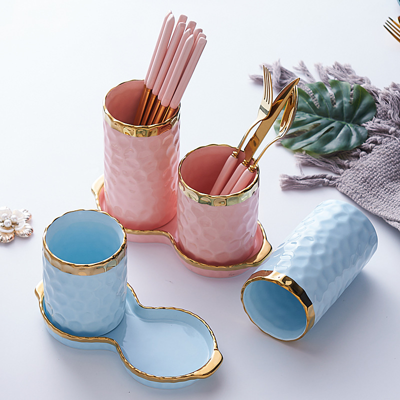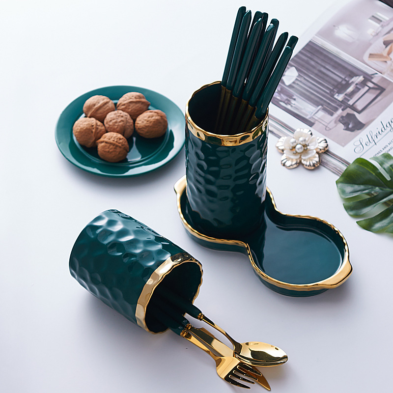 锤纹创意陶瓷筷笼沥水餐具刀叉勺筷厨房收纳筒家用沥水筷子筒