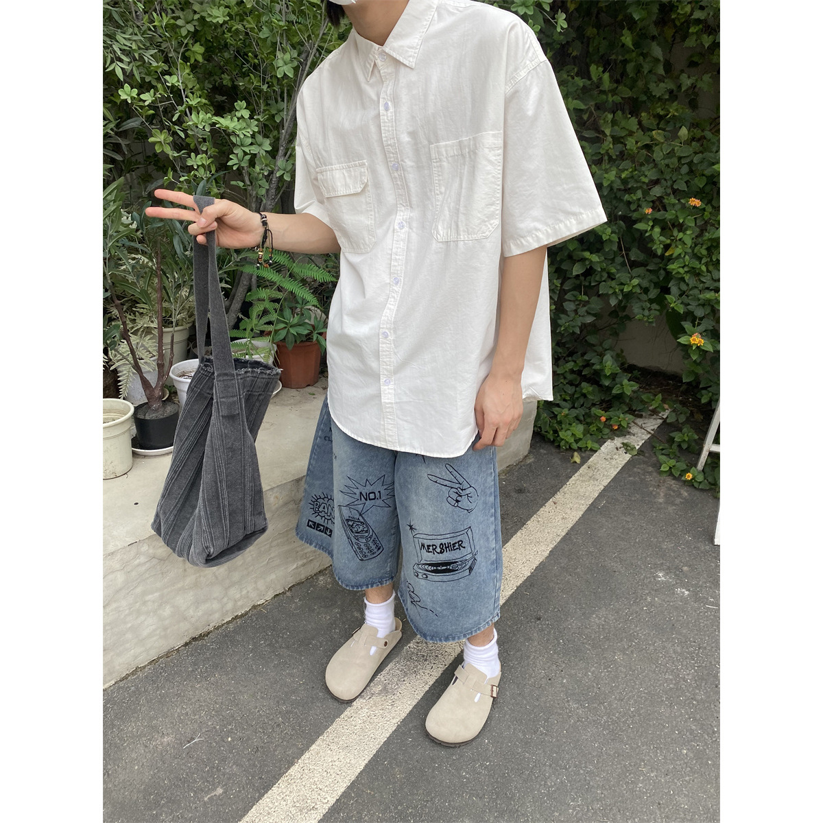 复古工装口袋纯色短袖衬衣男夏季新款宽松美式百搭易打理衬衫