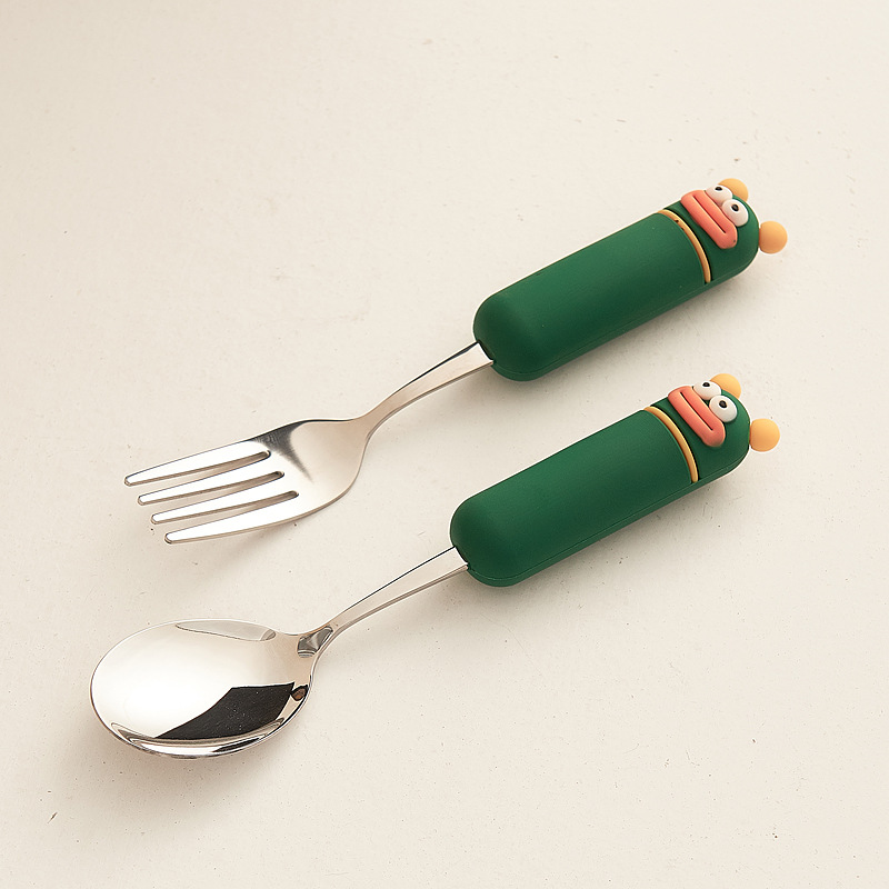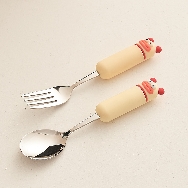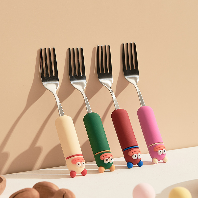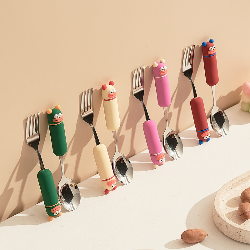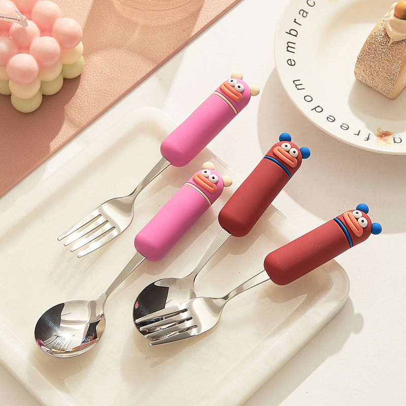 萌趣卡通叉勺家用卡通大嘴勺子高颜值304不锈钢餐具儿童甜品叉子