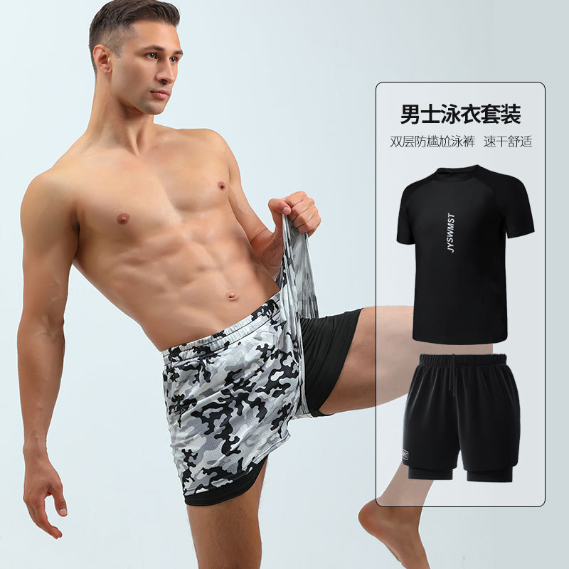游泳衣男士套装速干大码成人泡温泉迷彩泳裤男款沙滩裤男生短袖
