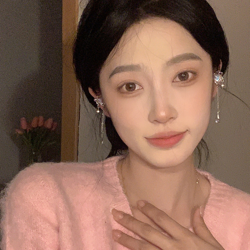 甜酷风爱心欧泊石流苏耳夹无耳洞小众设计高级感耳骨夹无耳洞耳饰