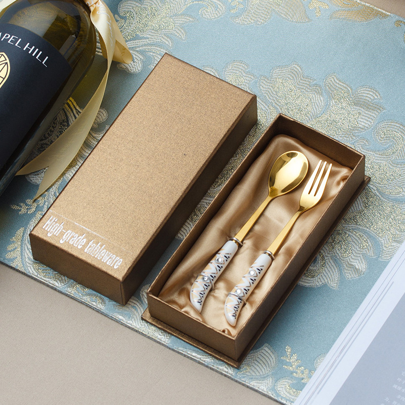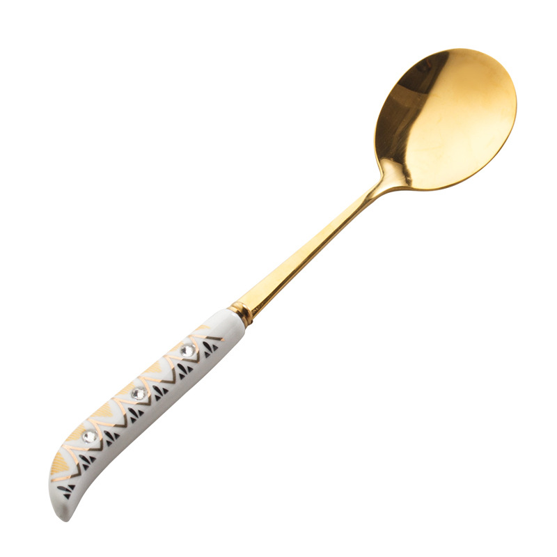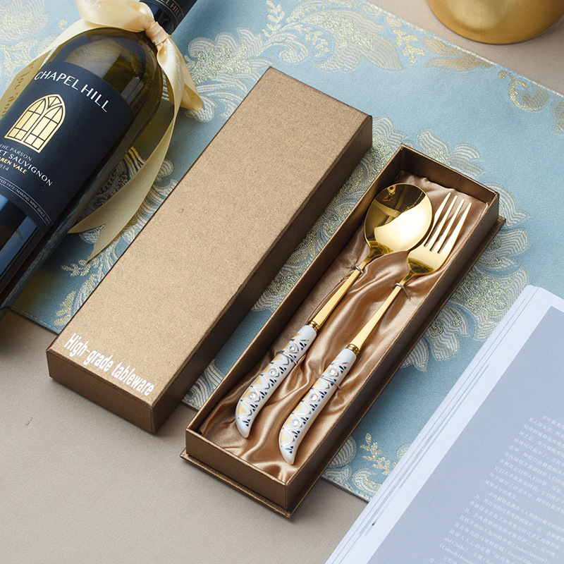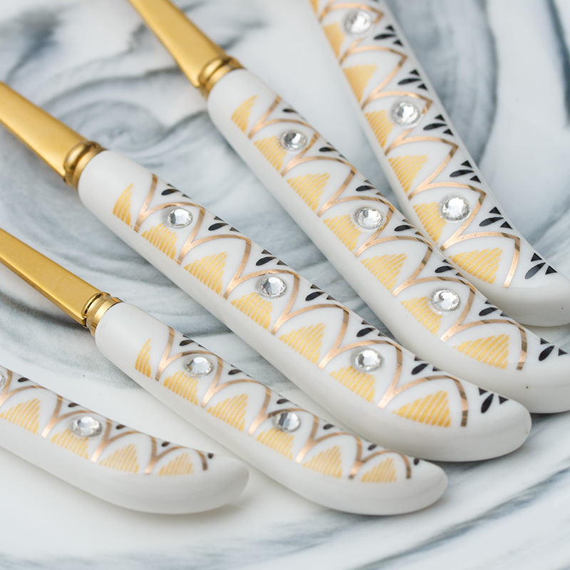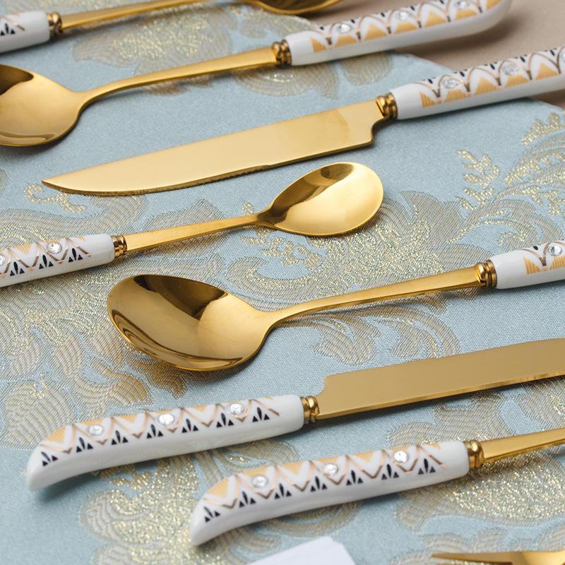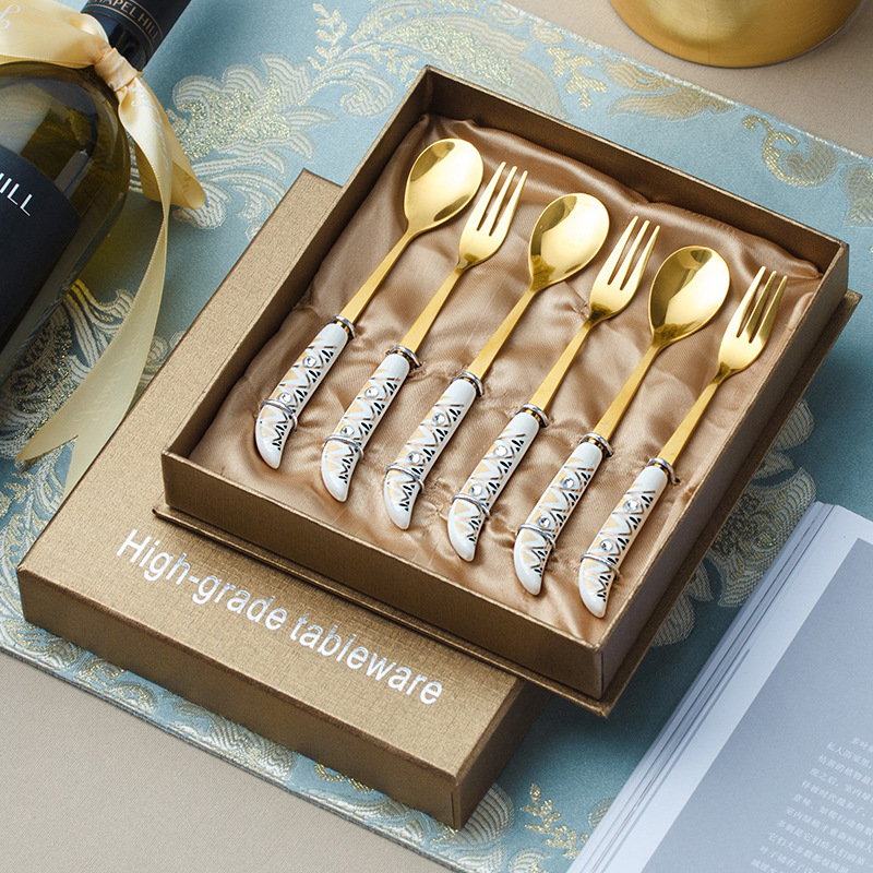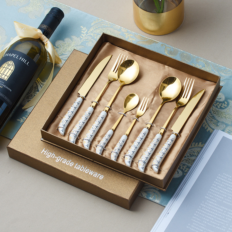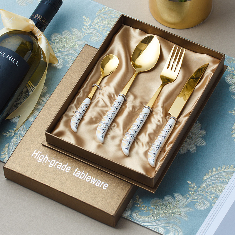 赫本风陶瓷手柄不锈钢餐具牛排刀叉勺餐具套装钛金不锈钢勺子礼品