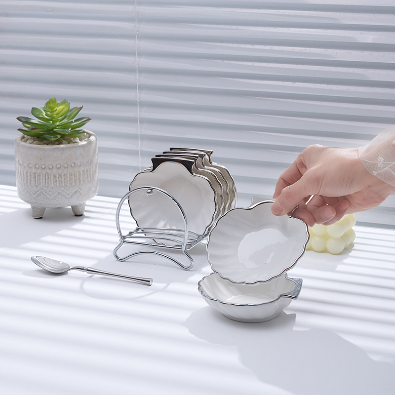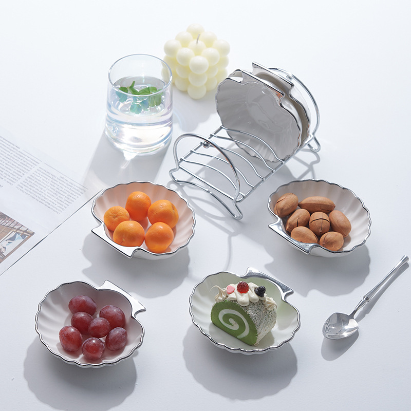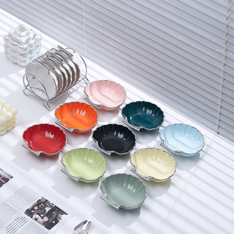 跨境轻奢风电镀银边贝壳吐骨碟多用途陶瓷调味碟高级感小碟子