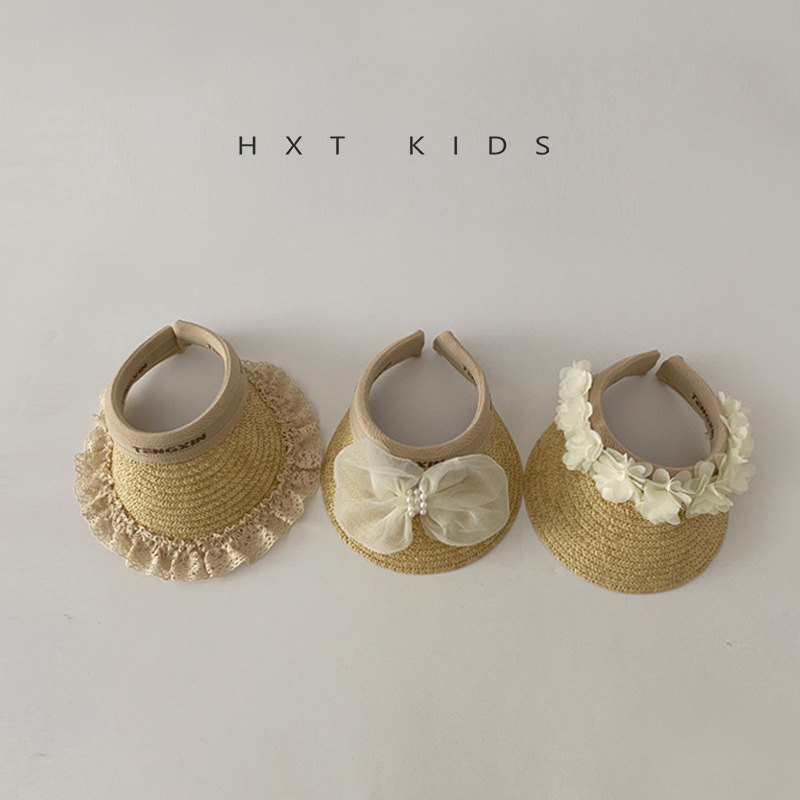 ins韩国女童洋气蝴蝶结蕾丝花边空顶草帽夏天宝宝出游大帽檐帽子