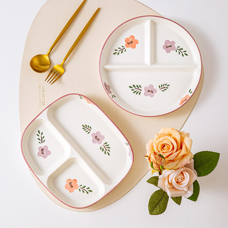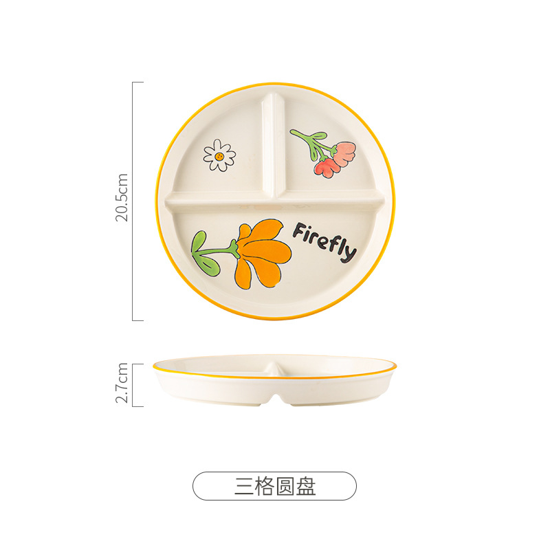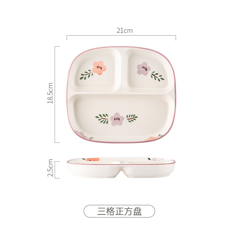 分格减脂餐盘一人食家用早餐餐具儿童陶瓷北欧定量盘子三格分餐盘