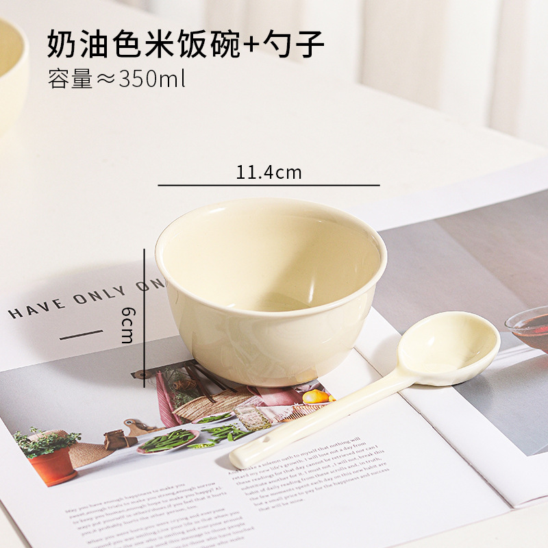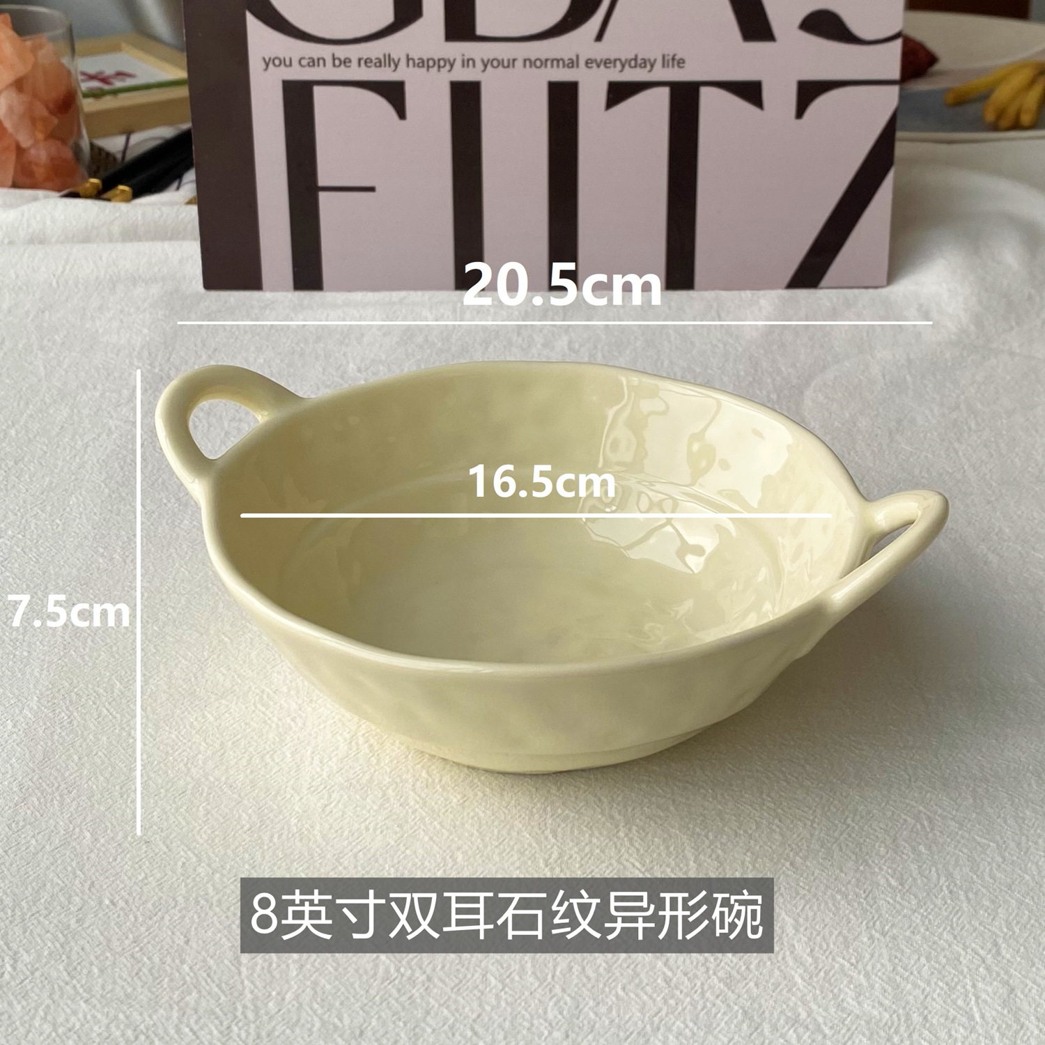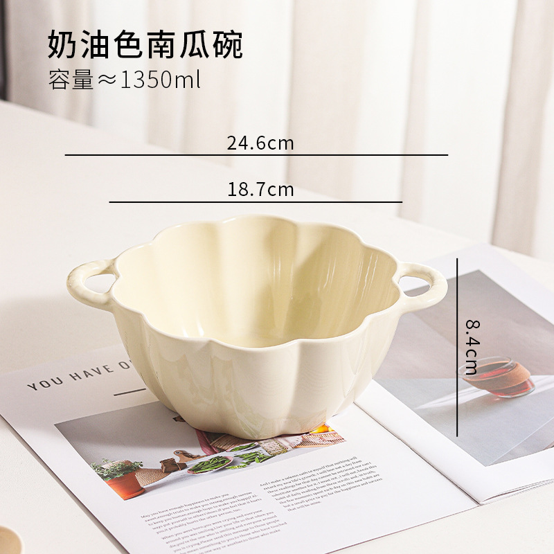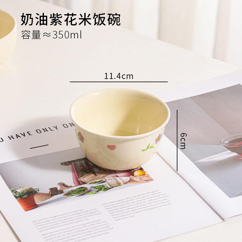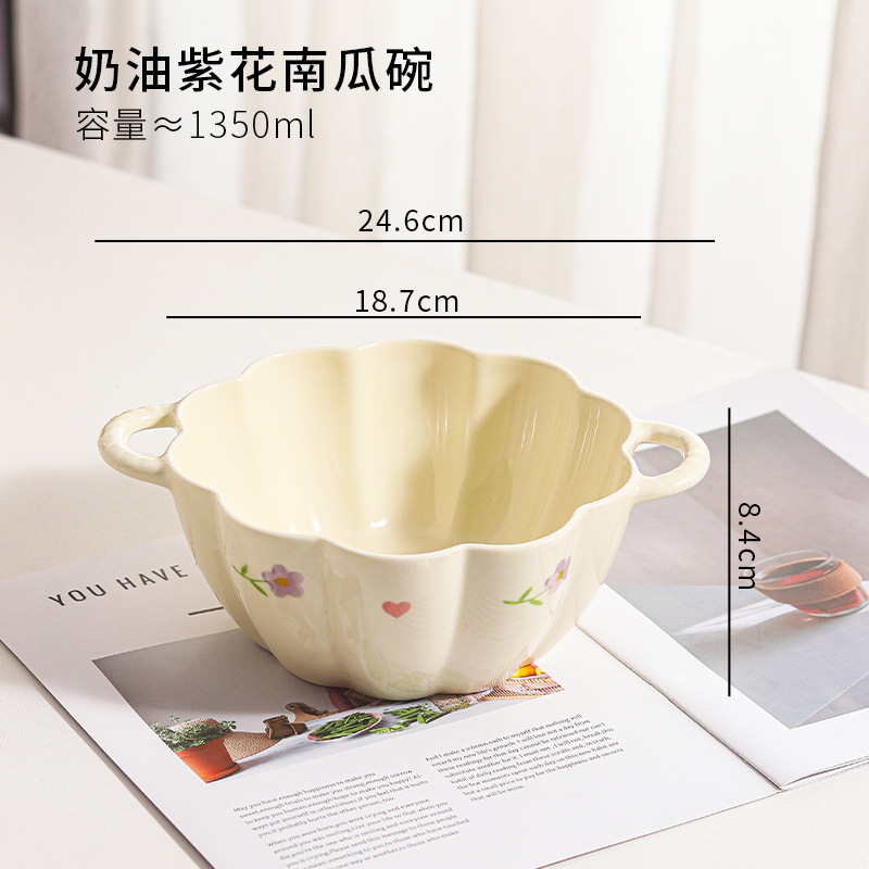 紫藤花奶油风ins盘碗套装家用饭碗陶瓷盘子碗双耳面碗大汤碗配勺