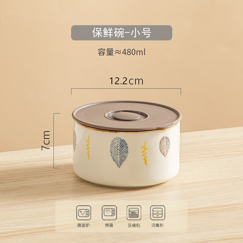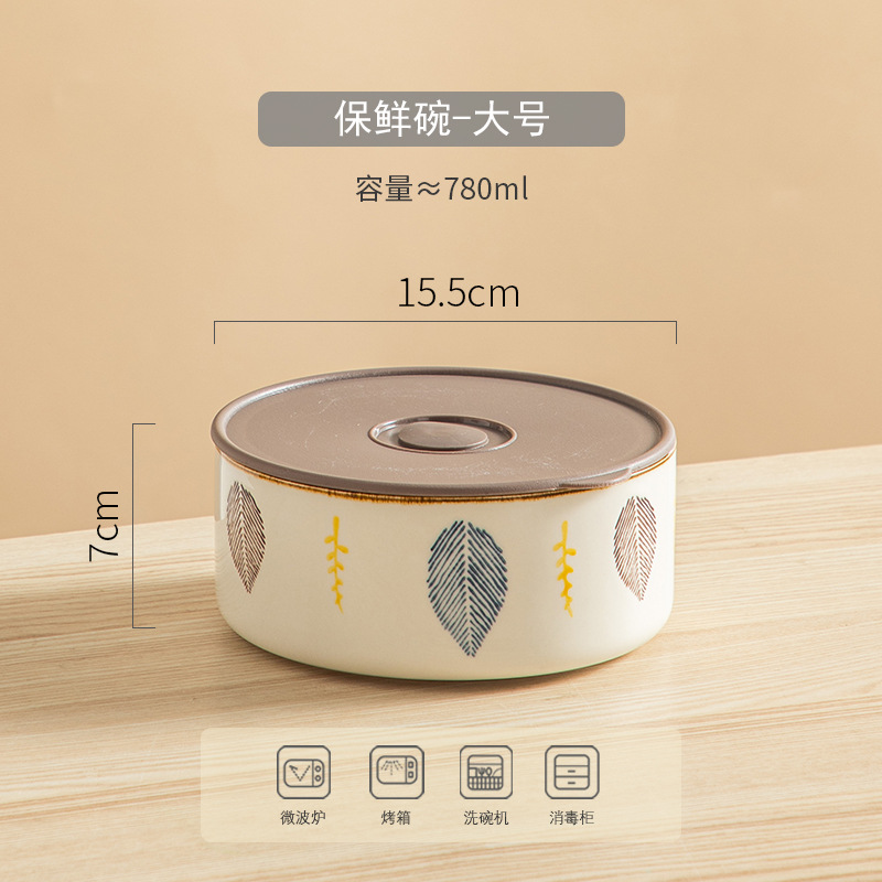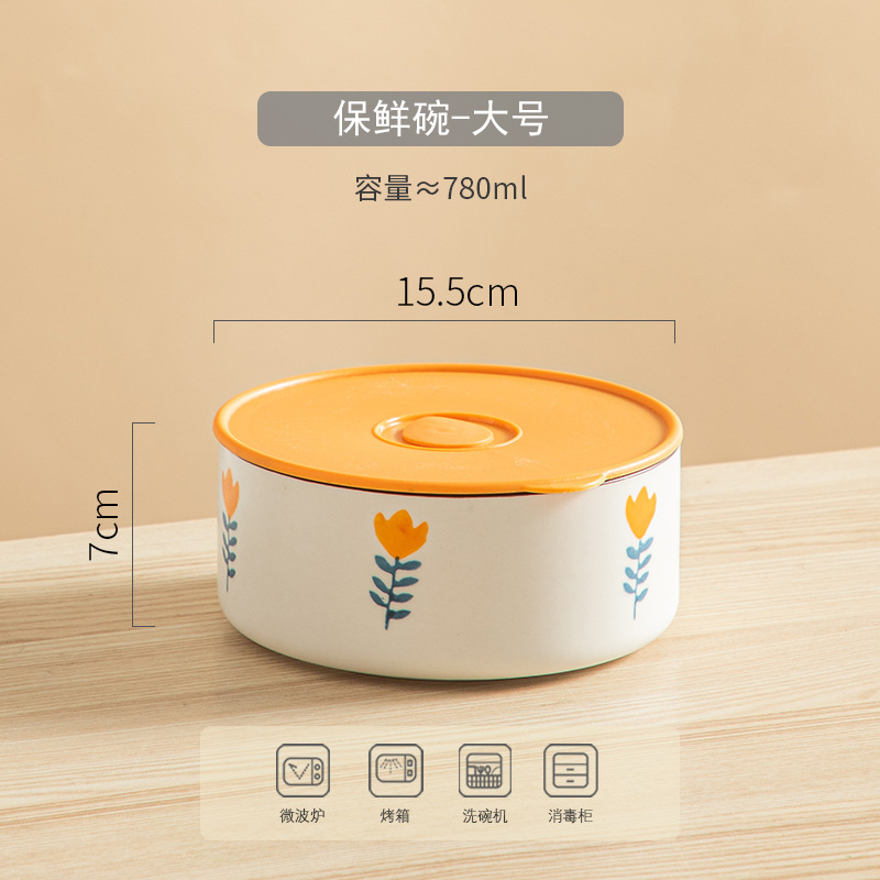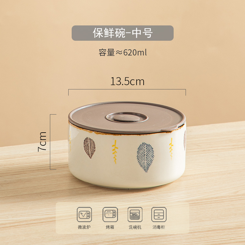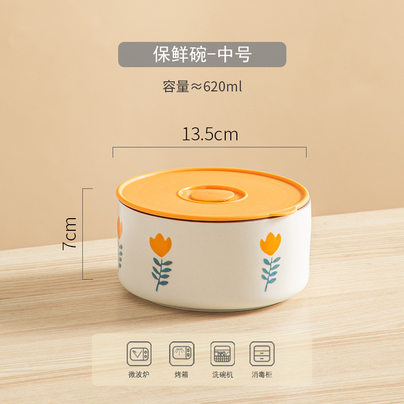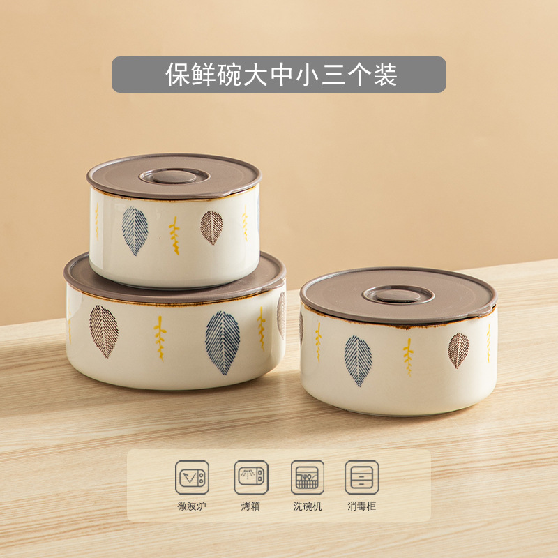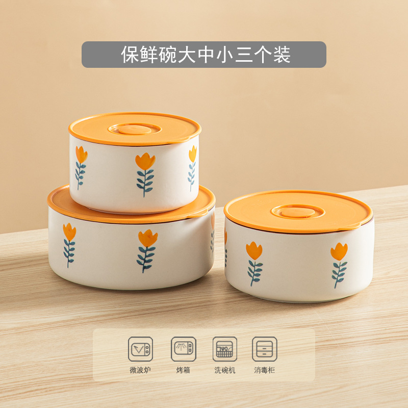 陶瓷保鲜碗三件套可微波加热冷藏带盖密封家用陶瓷饭盒水果便当