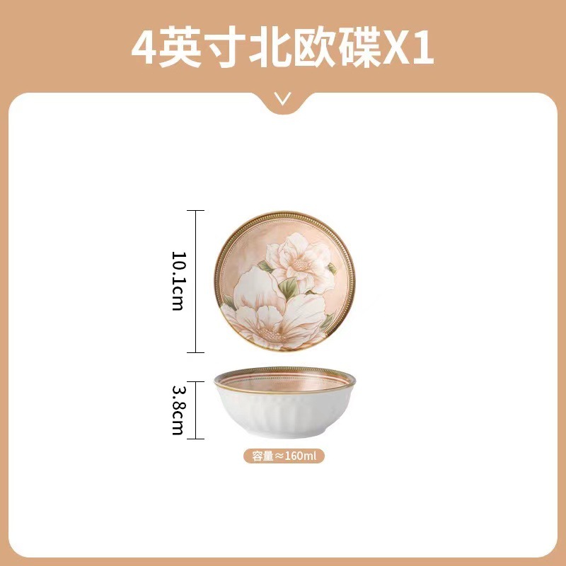 北欧山茶花网红陶瓷碗碟复古高颜值盘子家用釉下彩碗