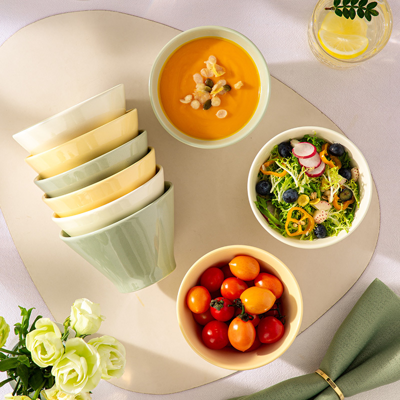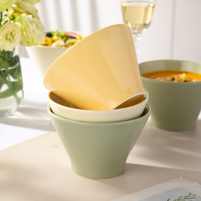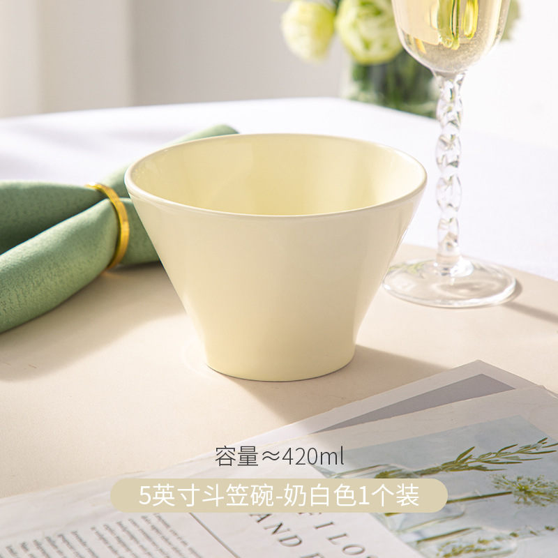 奶油风5英寸斗笠碗餐具冰淇淋碗陶瓷米饭碗家用高脚面碗防烫小碗