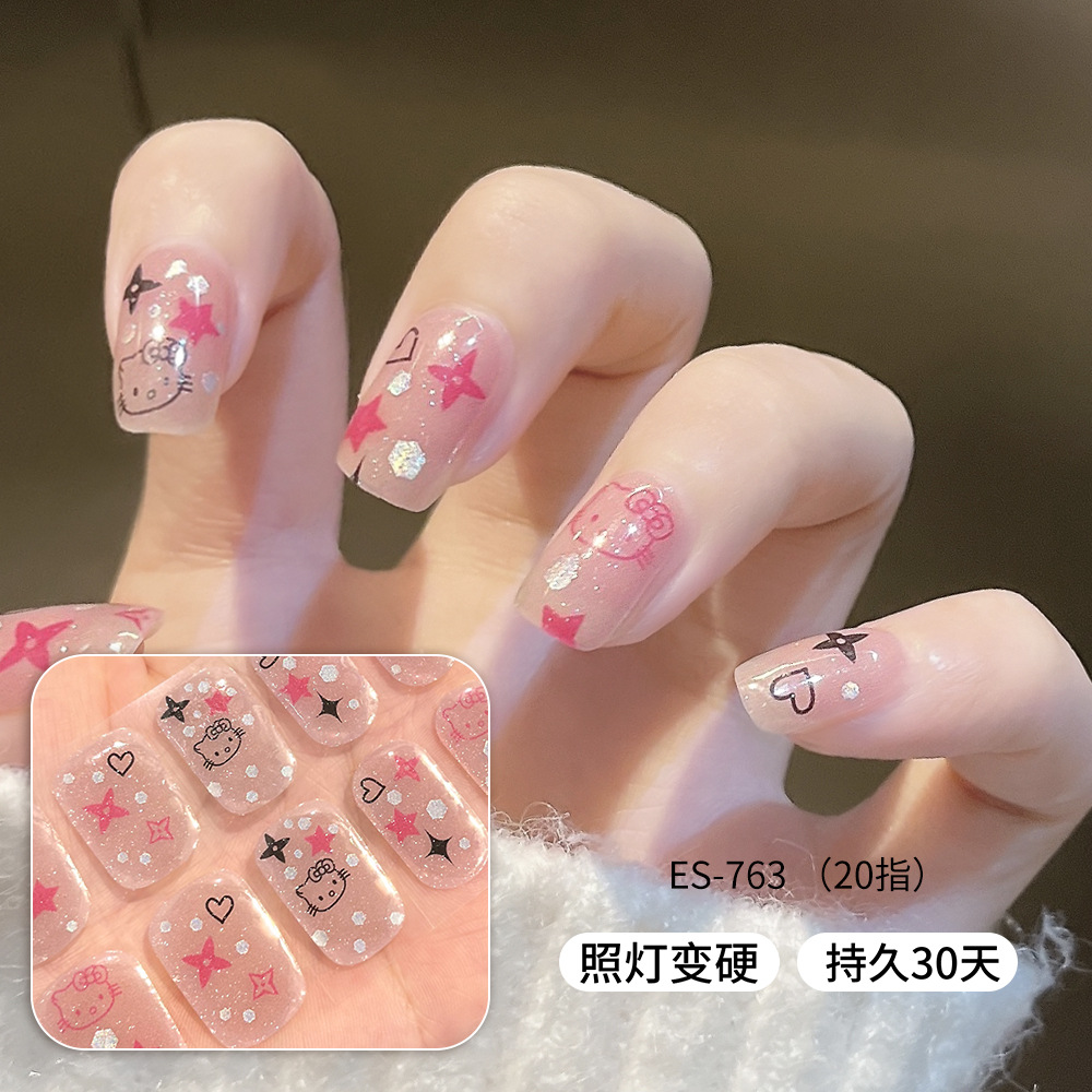 【ES763】20指半固化凝胶uv半烤美甲贴指甲贴片照灯变硬