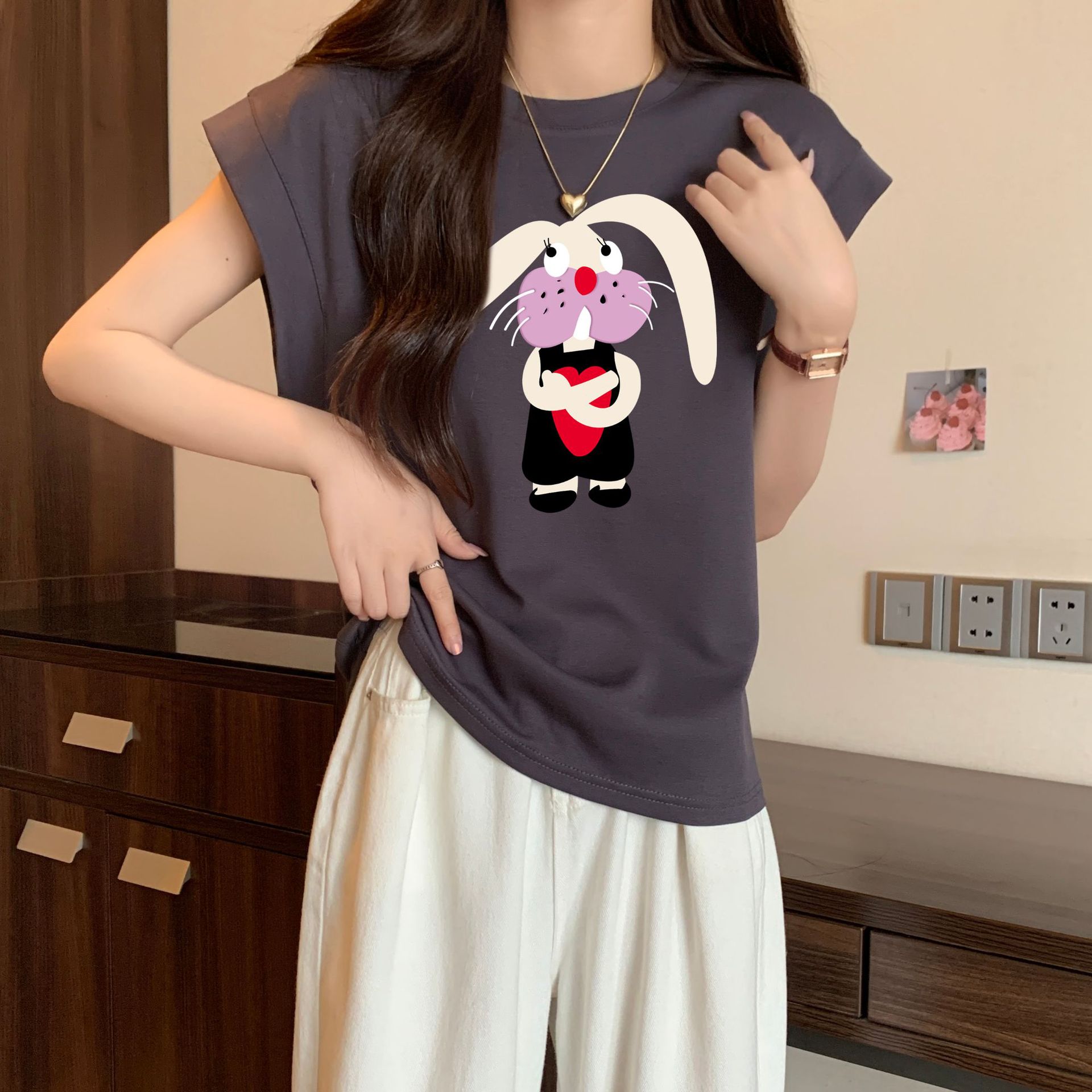 宽松显瘦正肩无袖t恤女新款圆领小飞袖上衣外穿背心