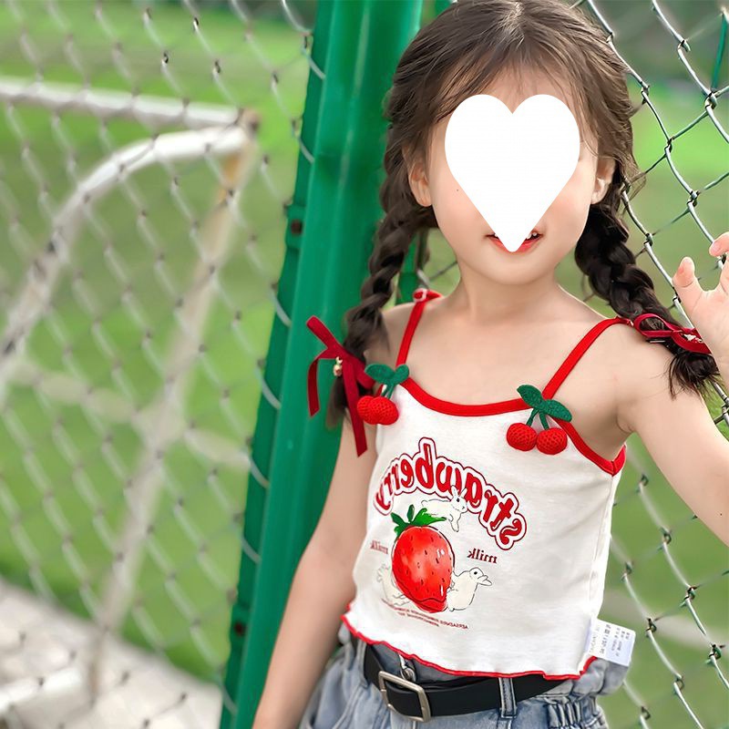 女童夏装背心吊带宝宝洋气儿童个性潮牌清新拼色草莓樱桃网红上衣
