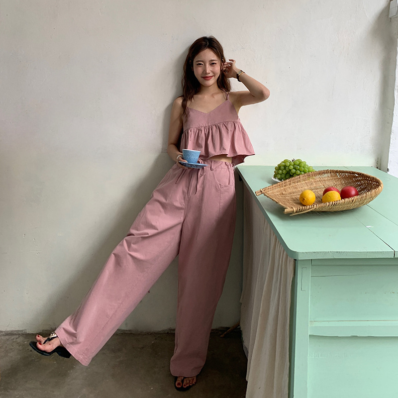 诠释美 NEW OPEN夏季休闲裤女阔腿高腰直筒纯棉系带裤子82658