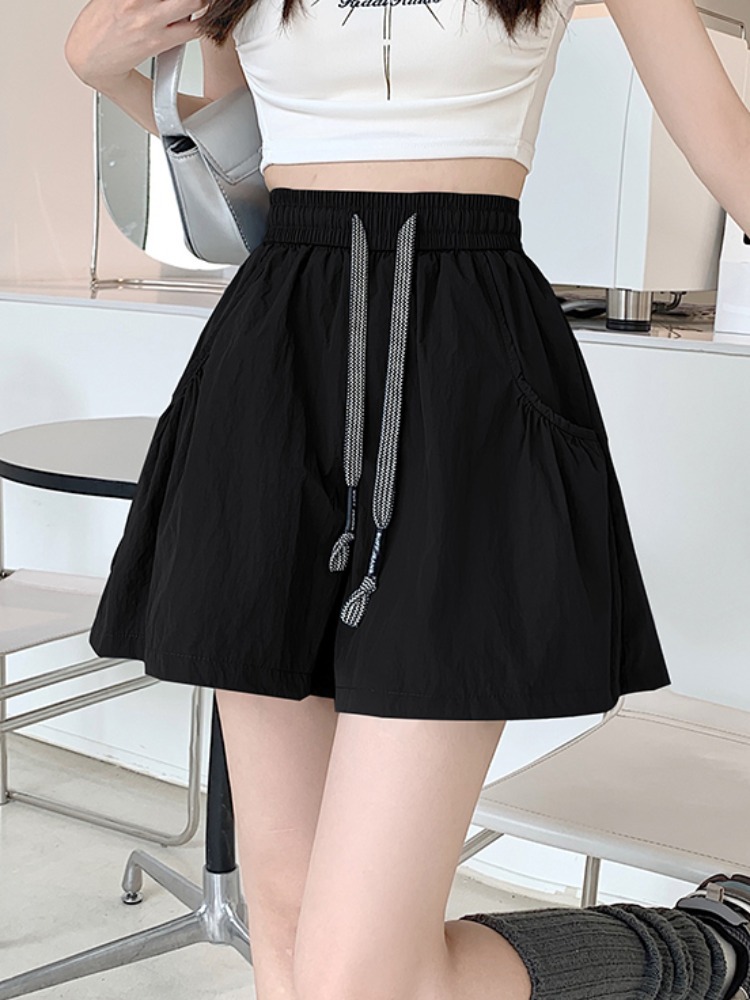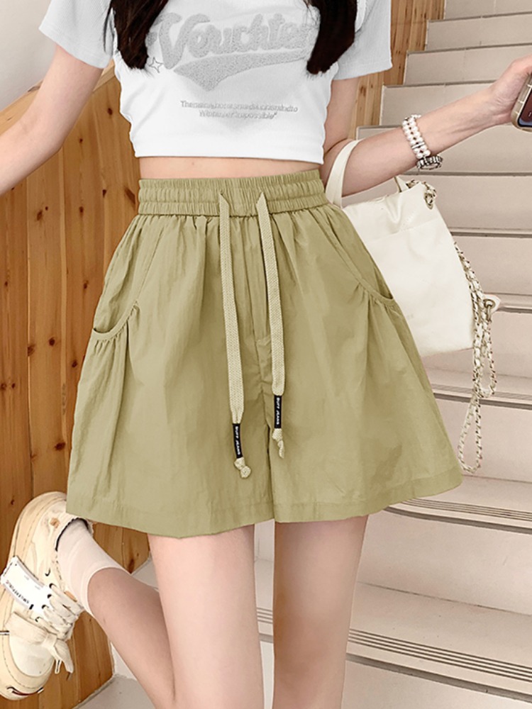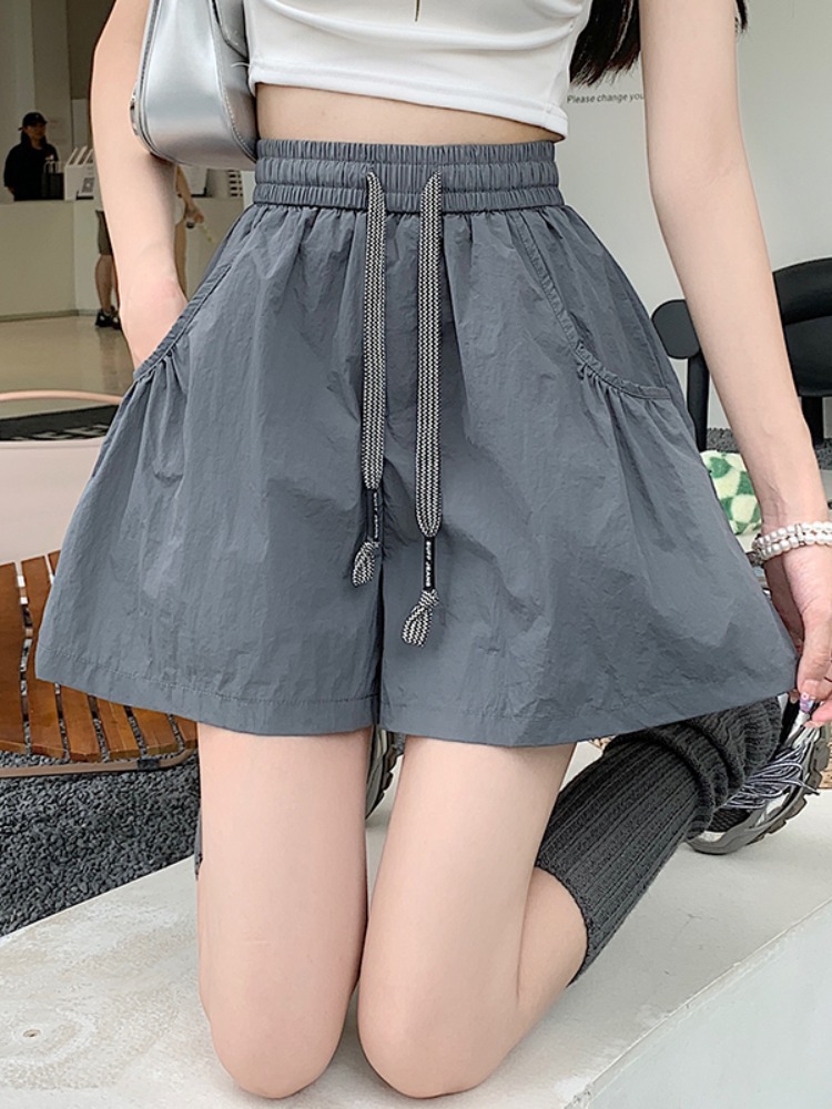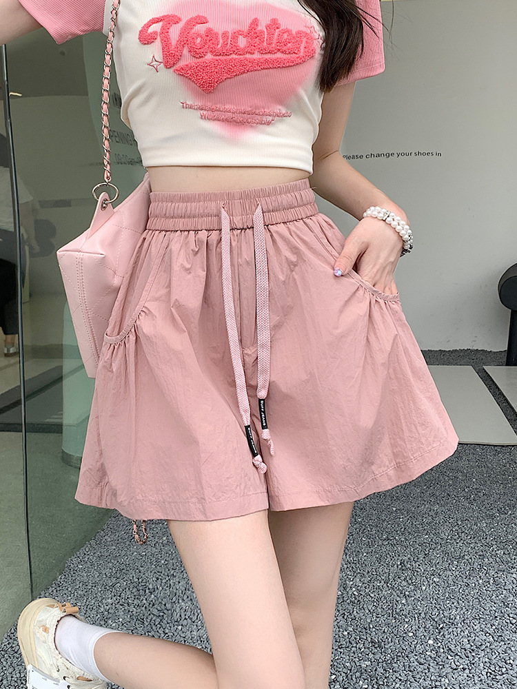 休闲粉色短裤女夏季外穿2025新款阔腿裤子薄款高腰A字宽松山本裤