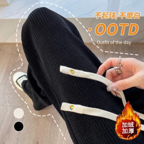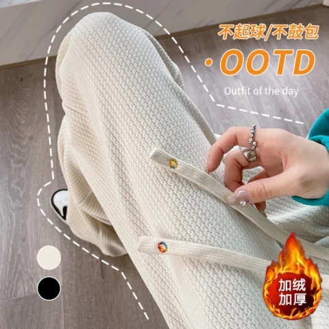 米白色阔腿裤女春秋季新款高腰垂感小个子宽松休闲窄版直筒裤