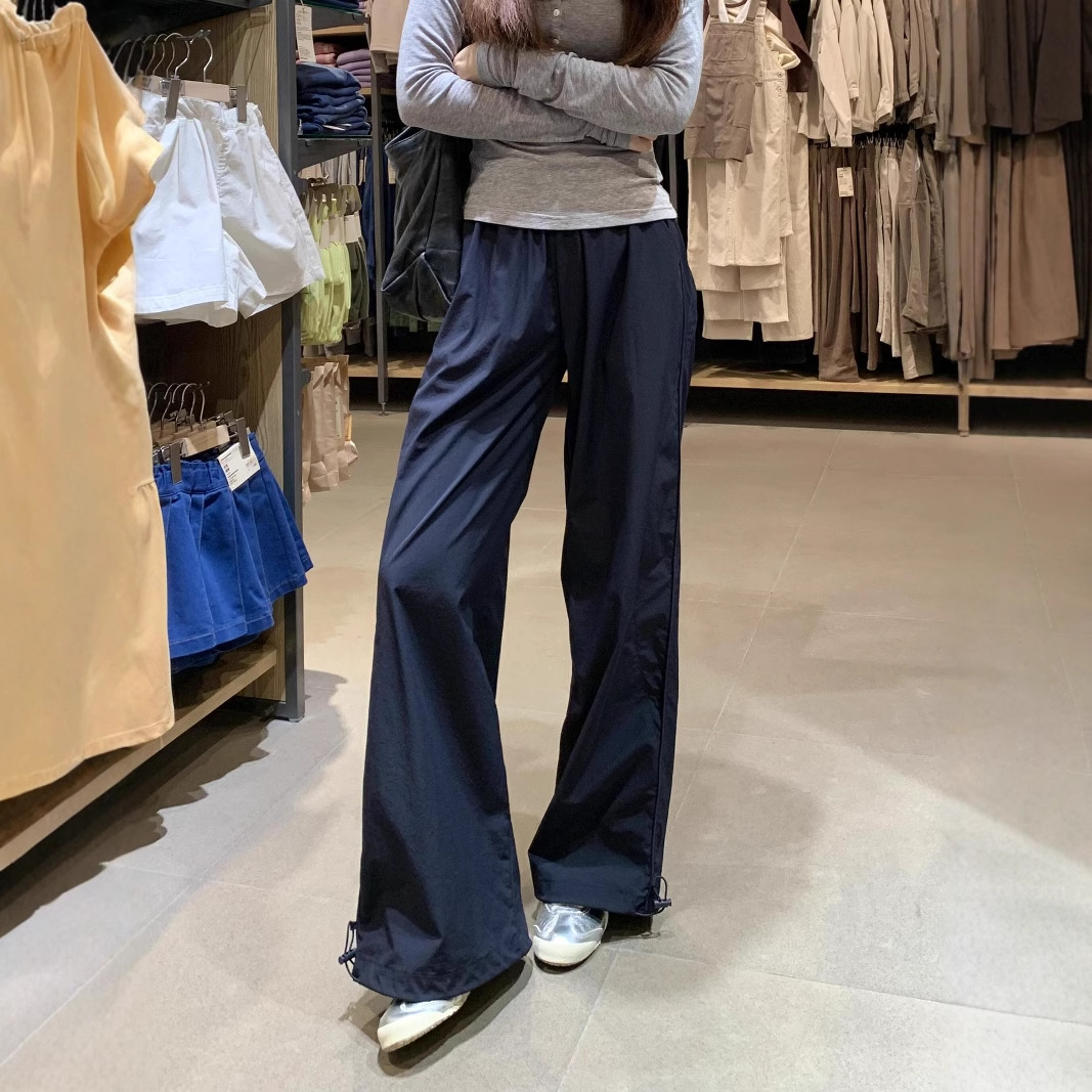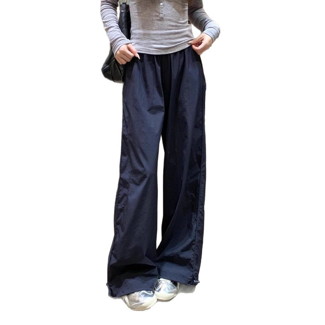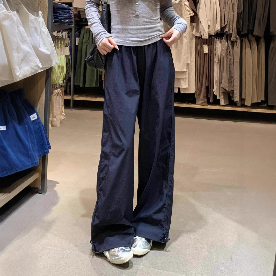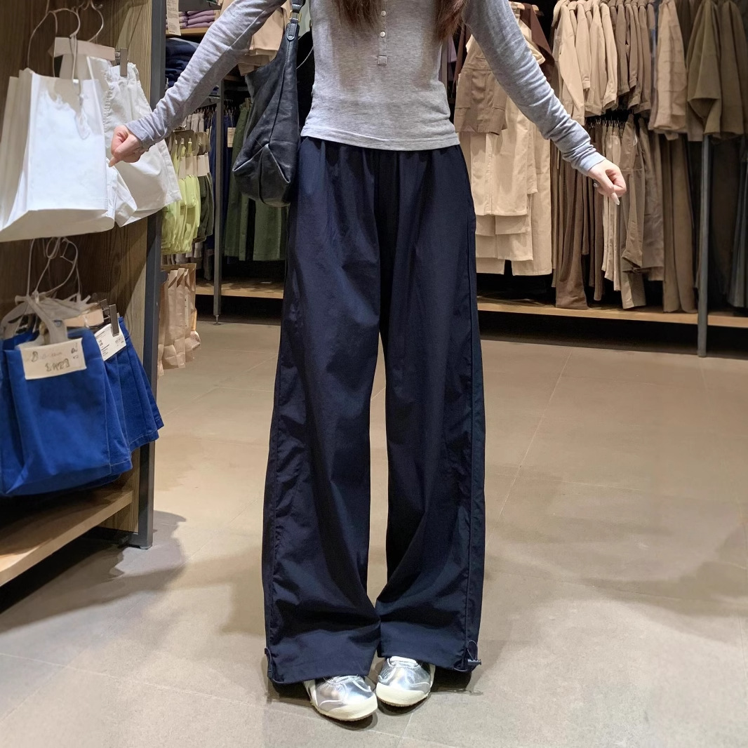 藏蓝色美式运动工装长裤女夏季新款百搭宽松慵懒休闲直筒阔腿裤子
