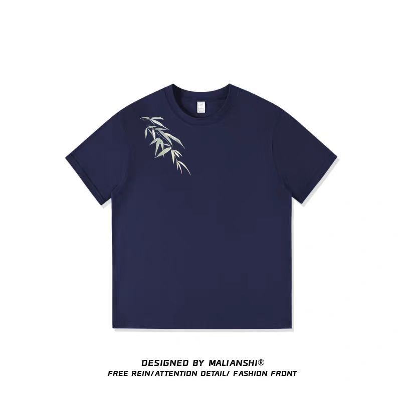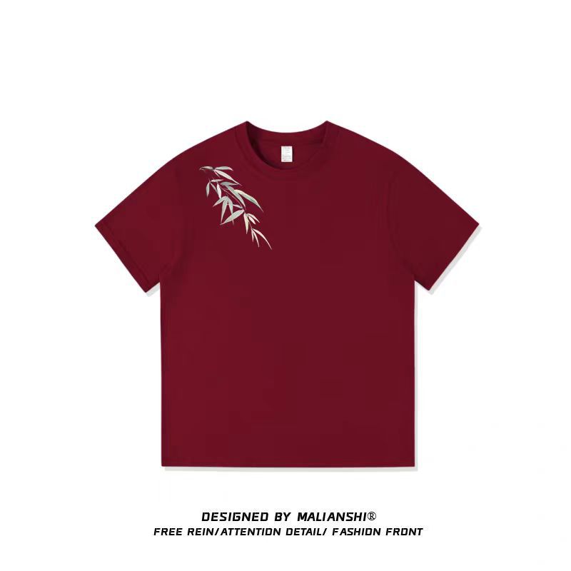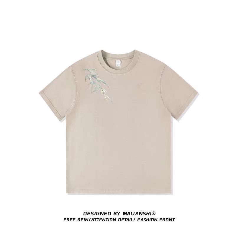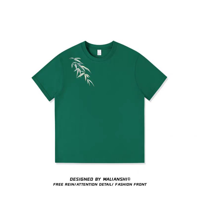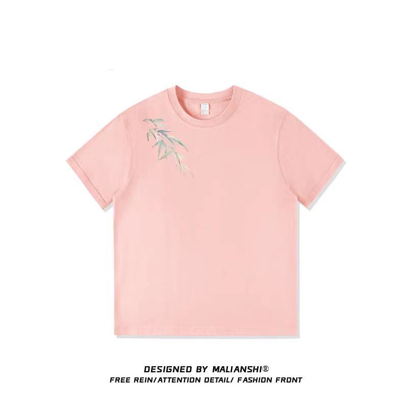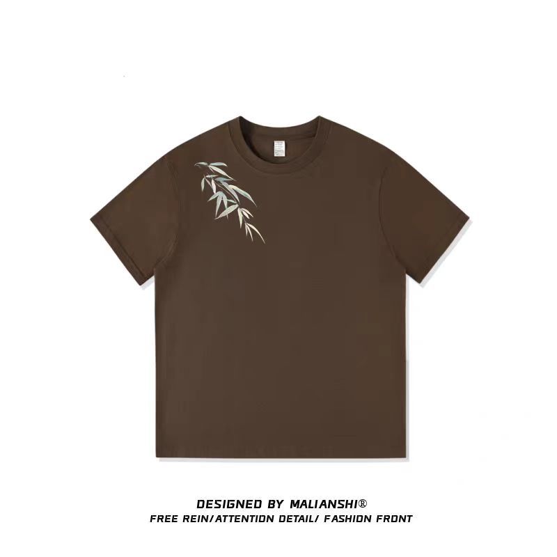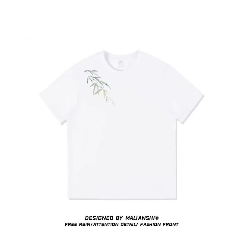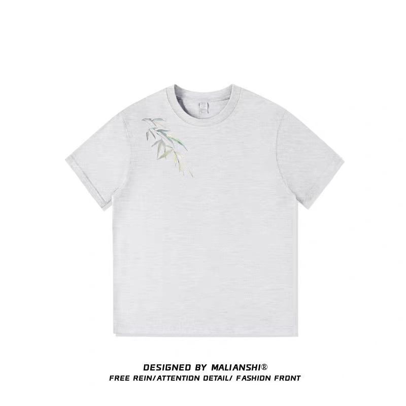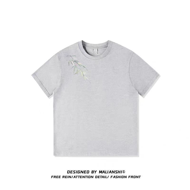 夏季纯棉正肩设计感小众短袖t恤女2025新款宽松潮牌高街树叶上衣
