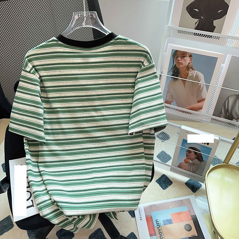 条纹短袖t恤女ins潮夏季新款体恤韩版宽松撞色小清新棉质上衣