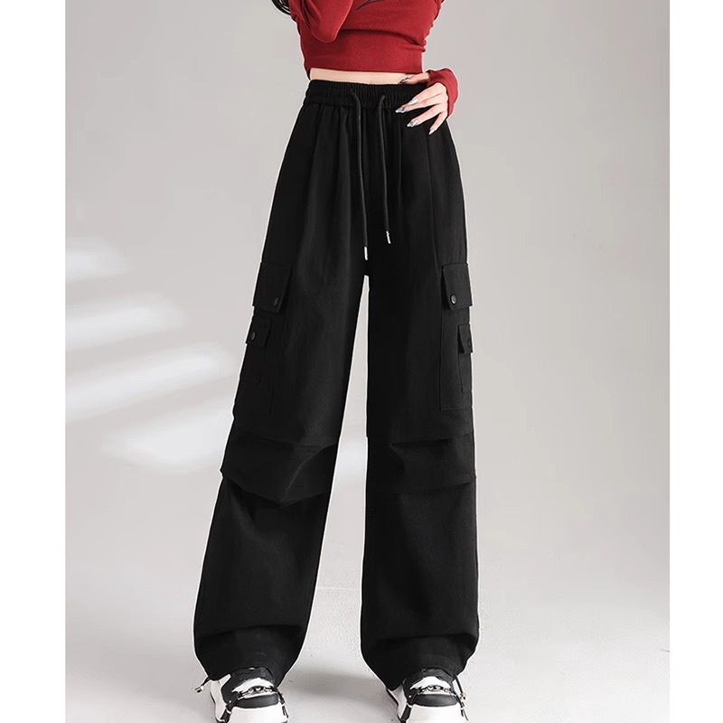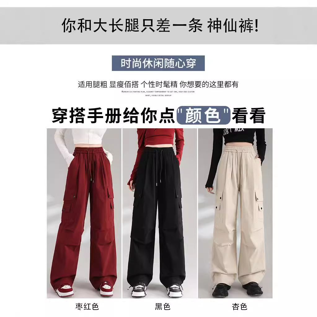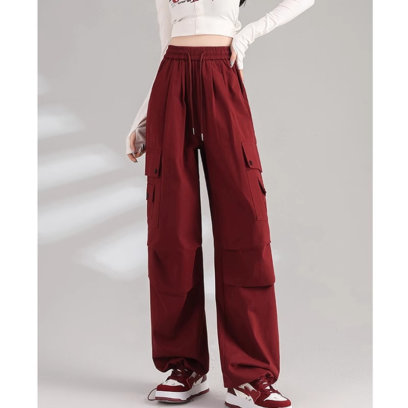 安可拉红色阔腿工装裤秋装女款2025新款红茶风穿搭宽松束脚休闲裤