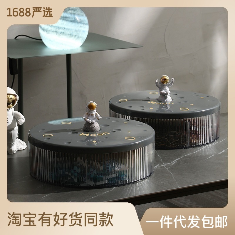 太空宇航员干果盘透明糖果零食盘旋转创意分隔带盖密封客厅水果盘