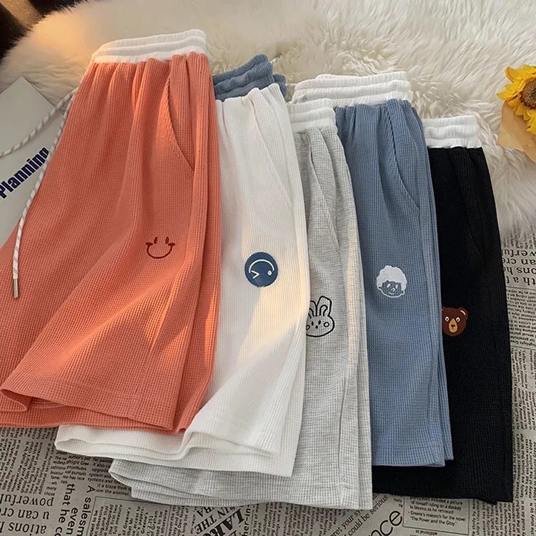 设计感小众华夫格运动短裤女夏季宽松薄款休闲外穿学生五分中裤子