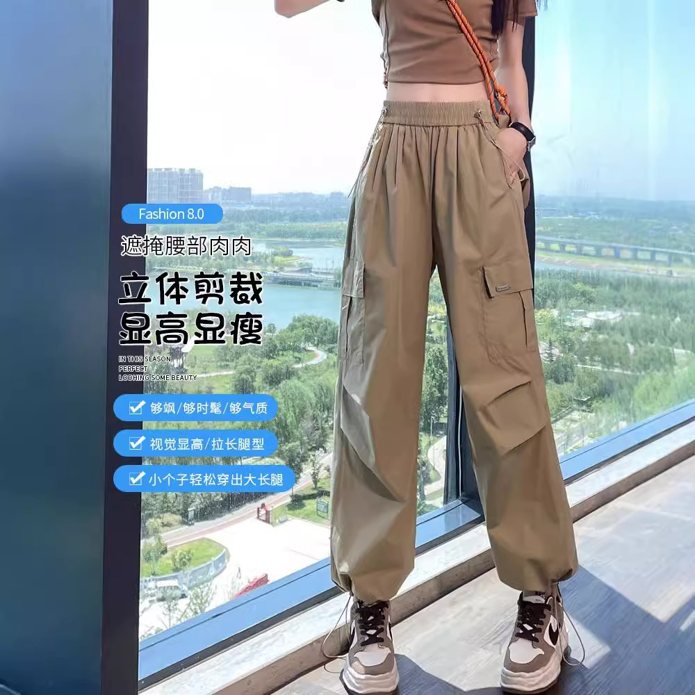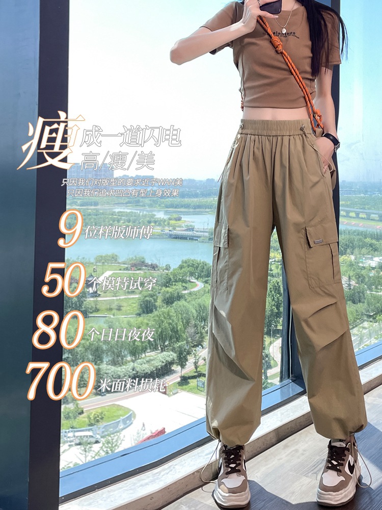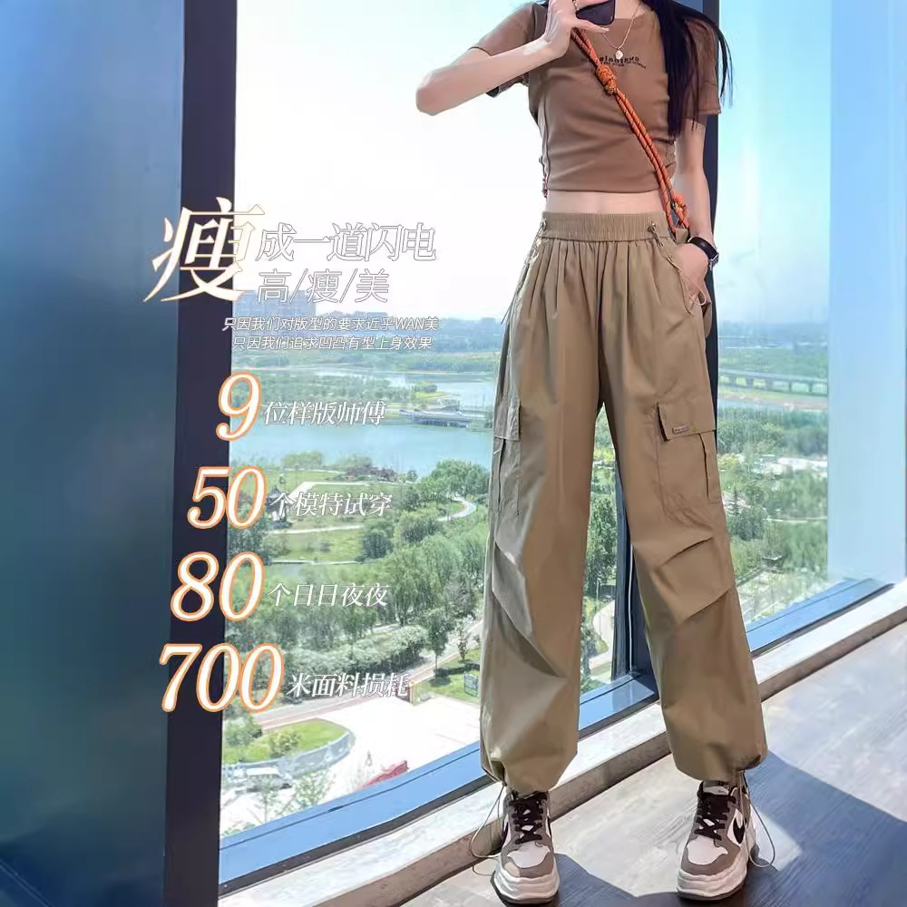 早秋美式轻量速干工装裤女夏季薄款小个子休闲运动男女直筒束脚裤