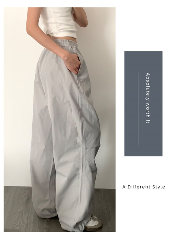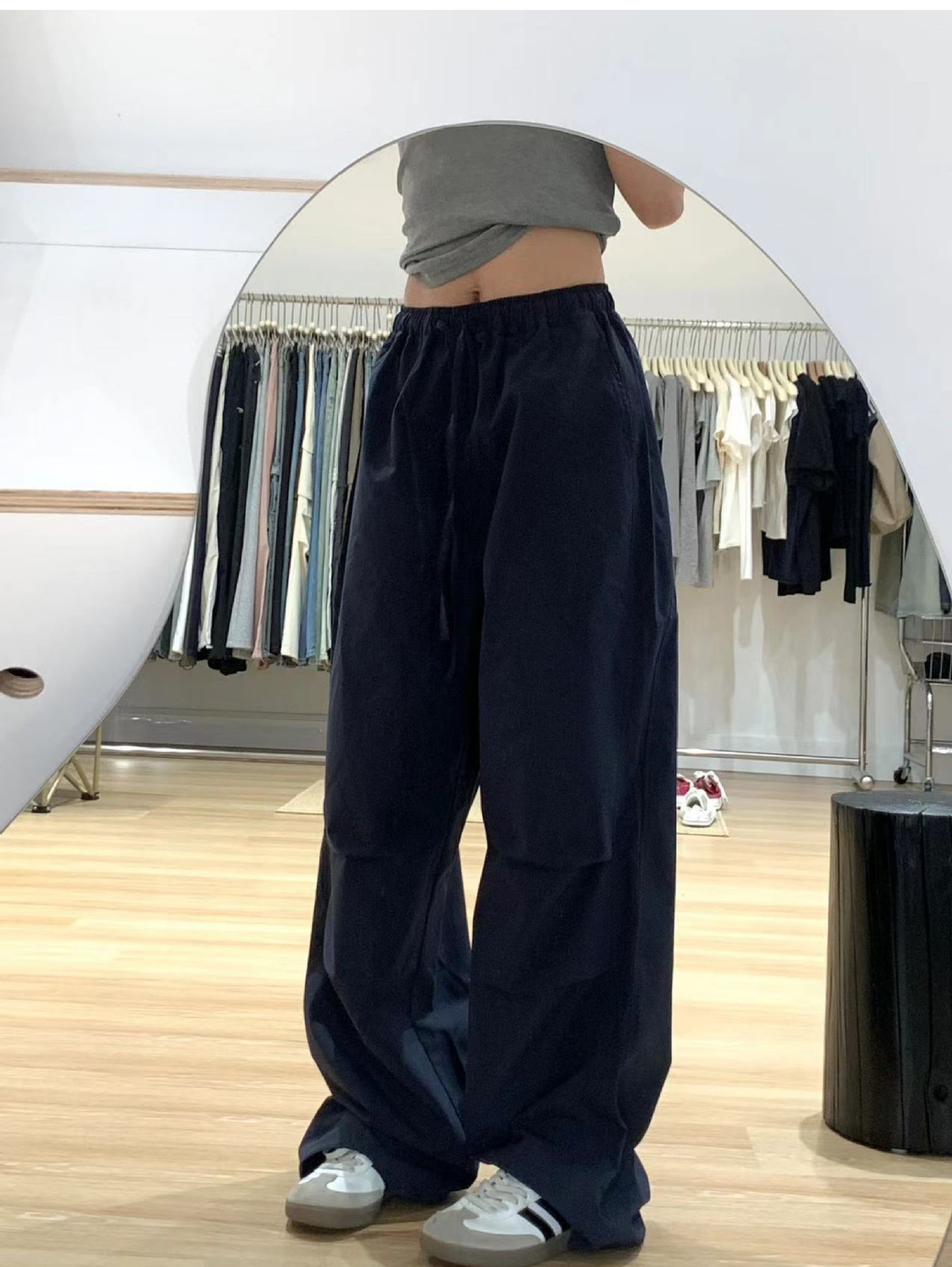 藏青色阔腿工装裤女2025春夏秋季新款大码高腰宽松显瘦拖地休闲裤