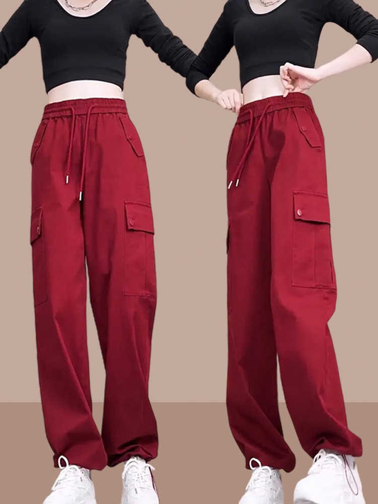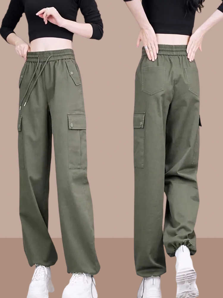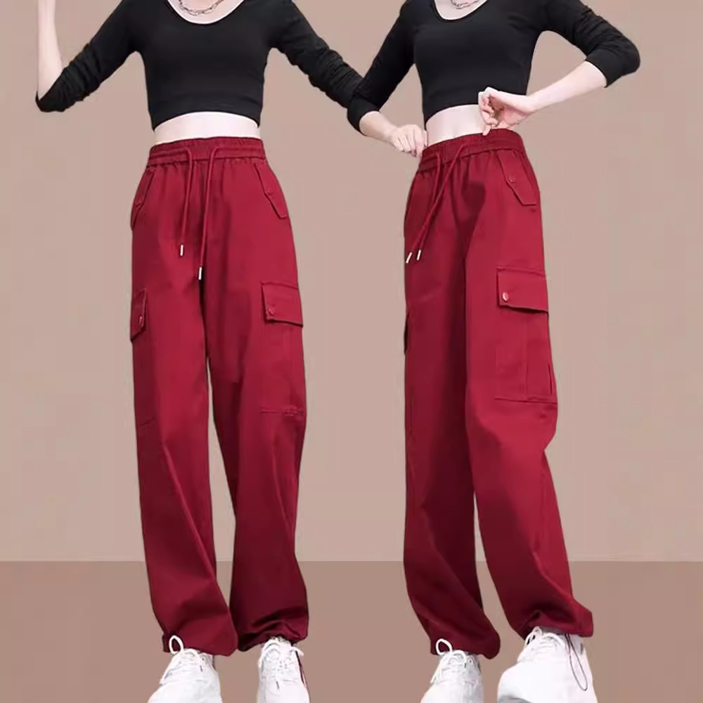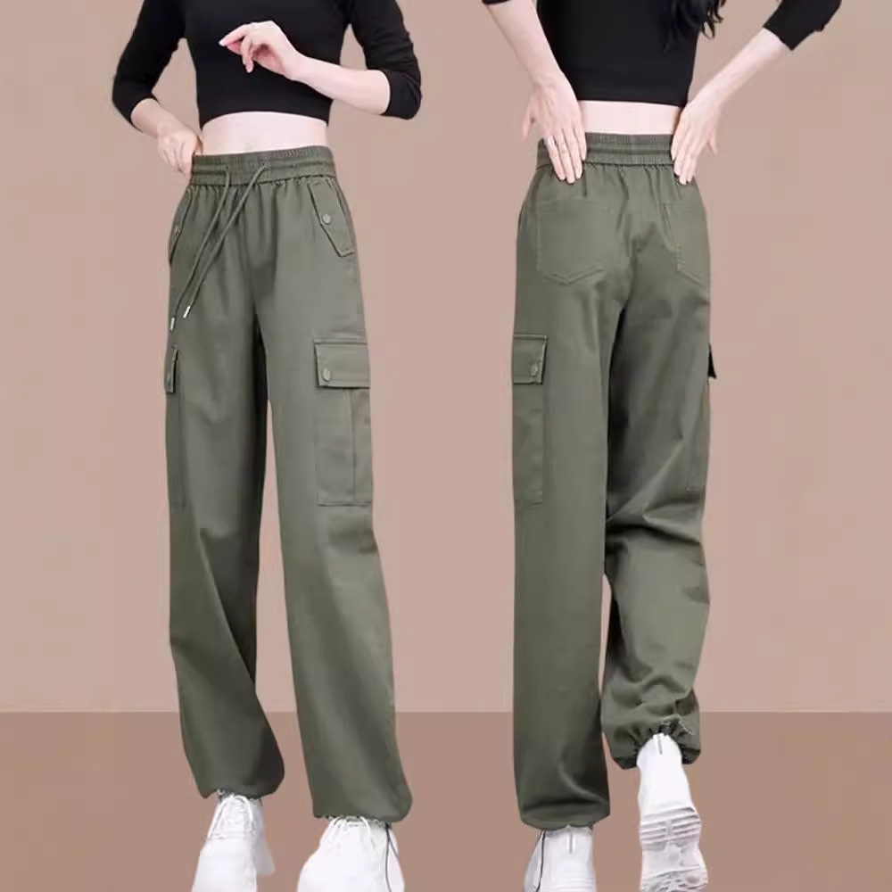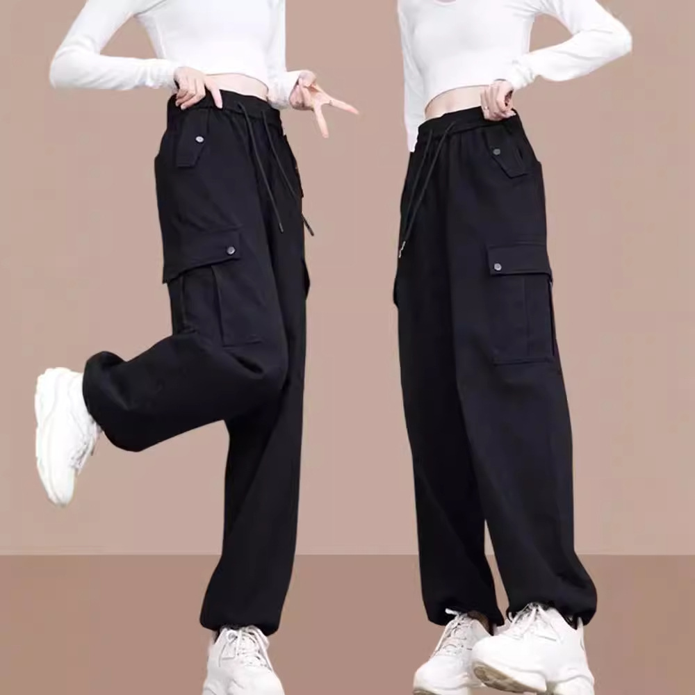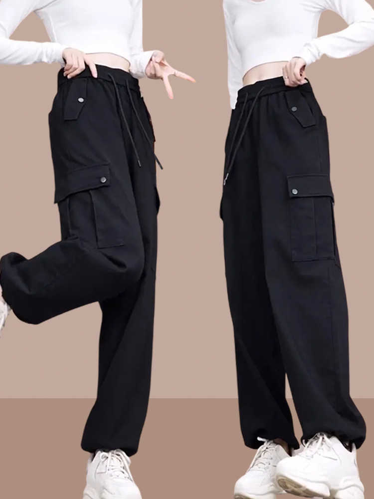 工装裤2025春秋新款女士宽松高腰休闲裤运动裤百搭束脚裤子潮ins