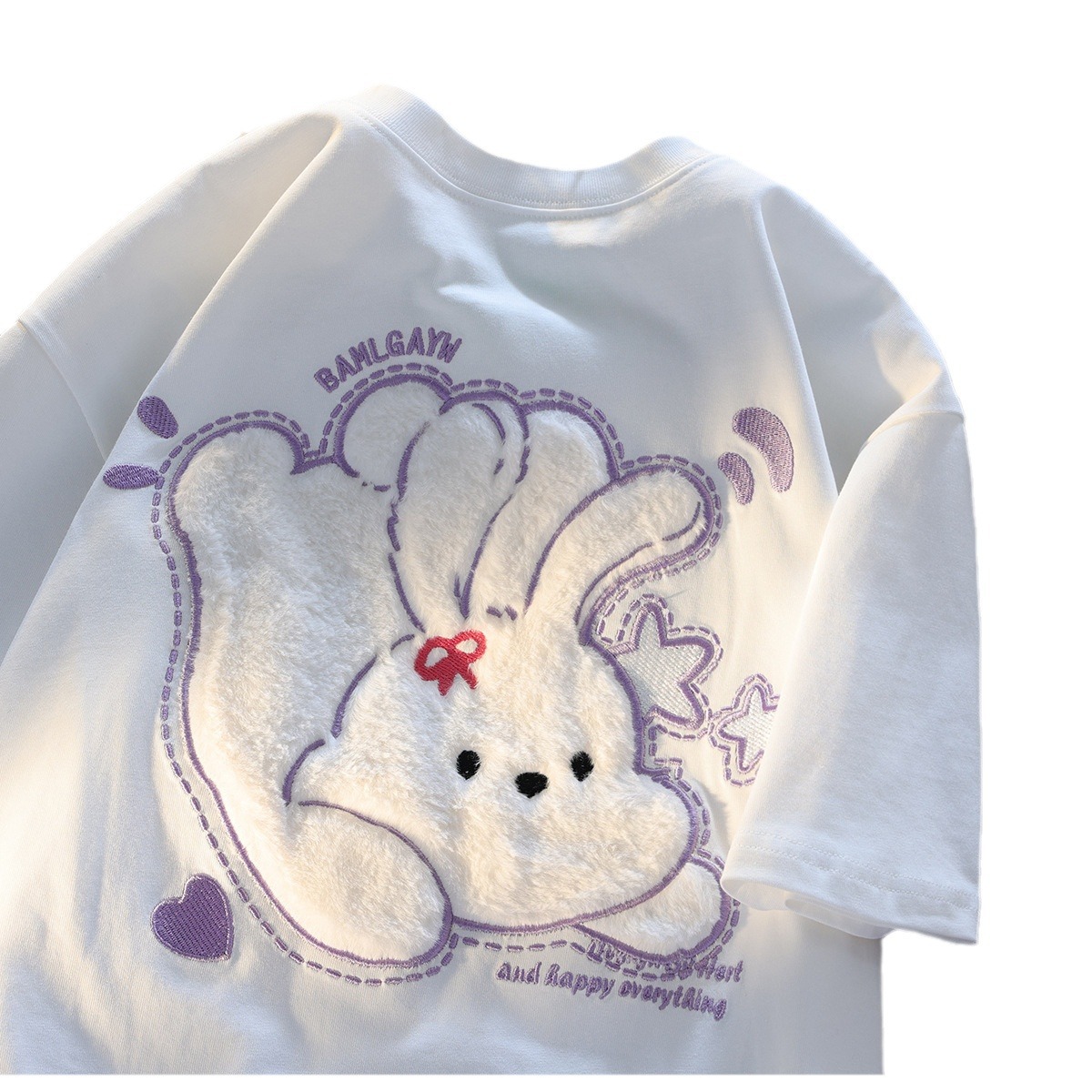 重工植绒刺绣纯棉设计感短袖t恤女夏季胖妹妹复古潮牌小众上衣服