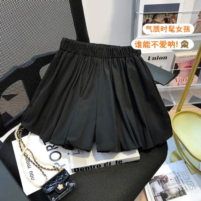 高腰字阔腿短裤女夏新款立体花苞蓬蓬短裙裤宽松灯笼裤泡泡裤裙