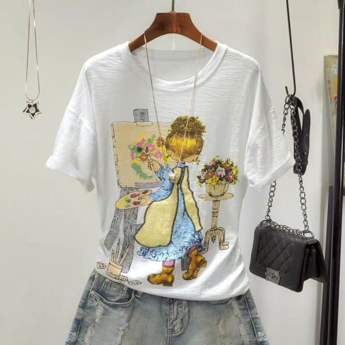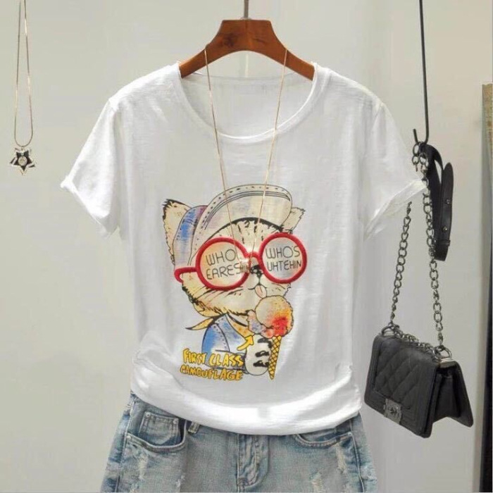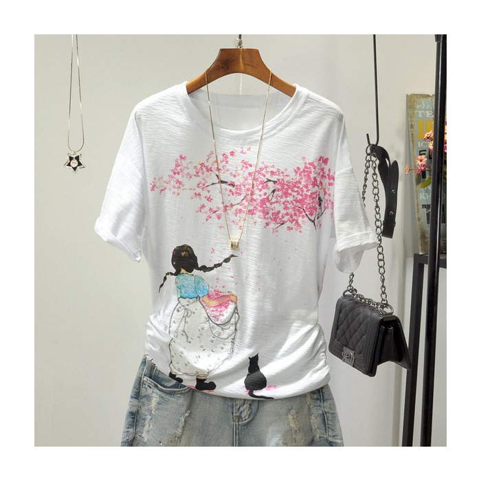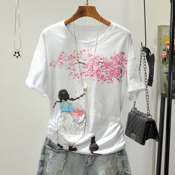 【品质竹节棉】多款可选 新款短袖印花t恤女宽松百搭韩版夏上衣潮