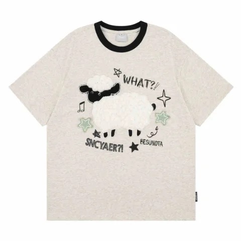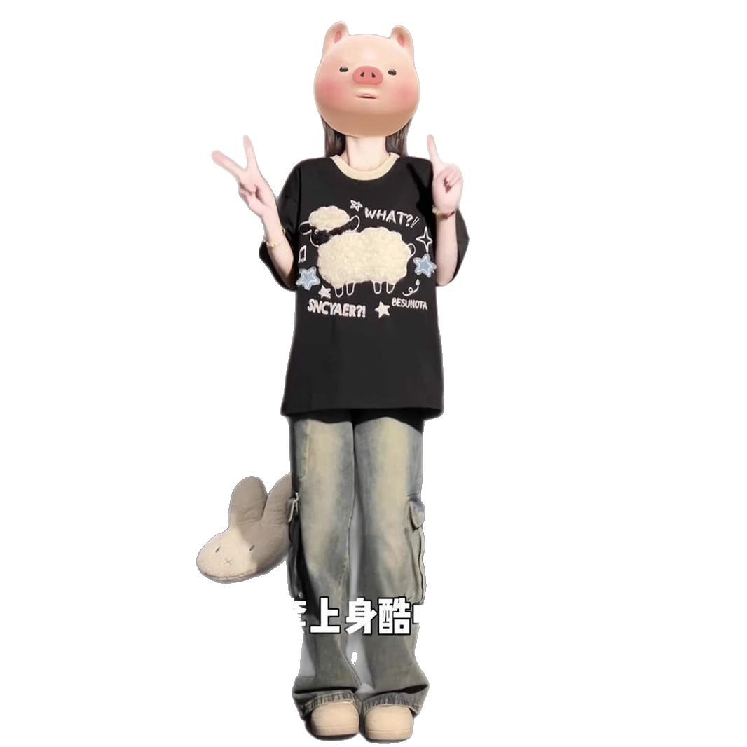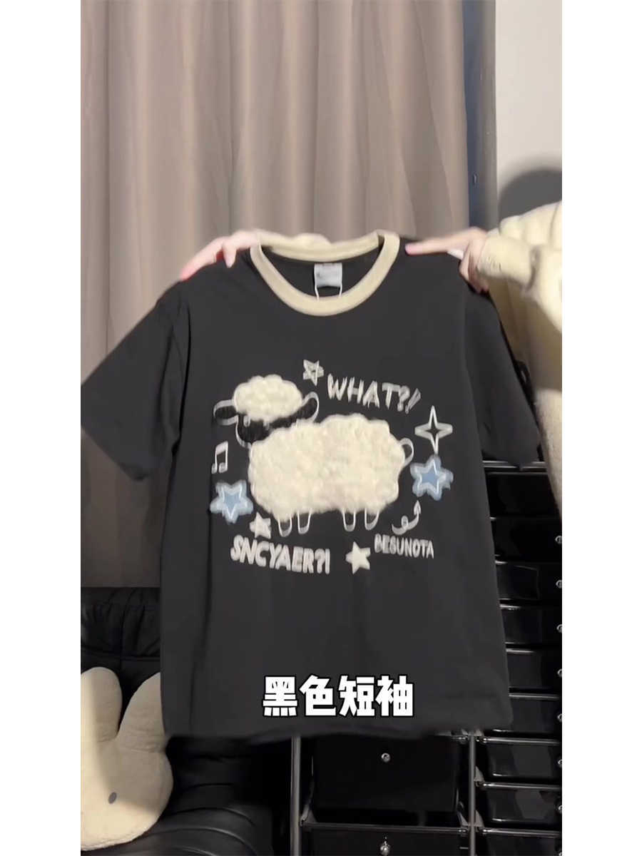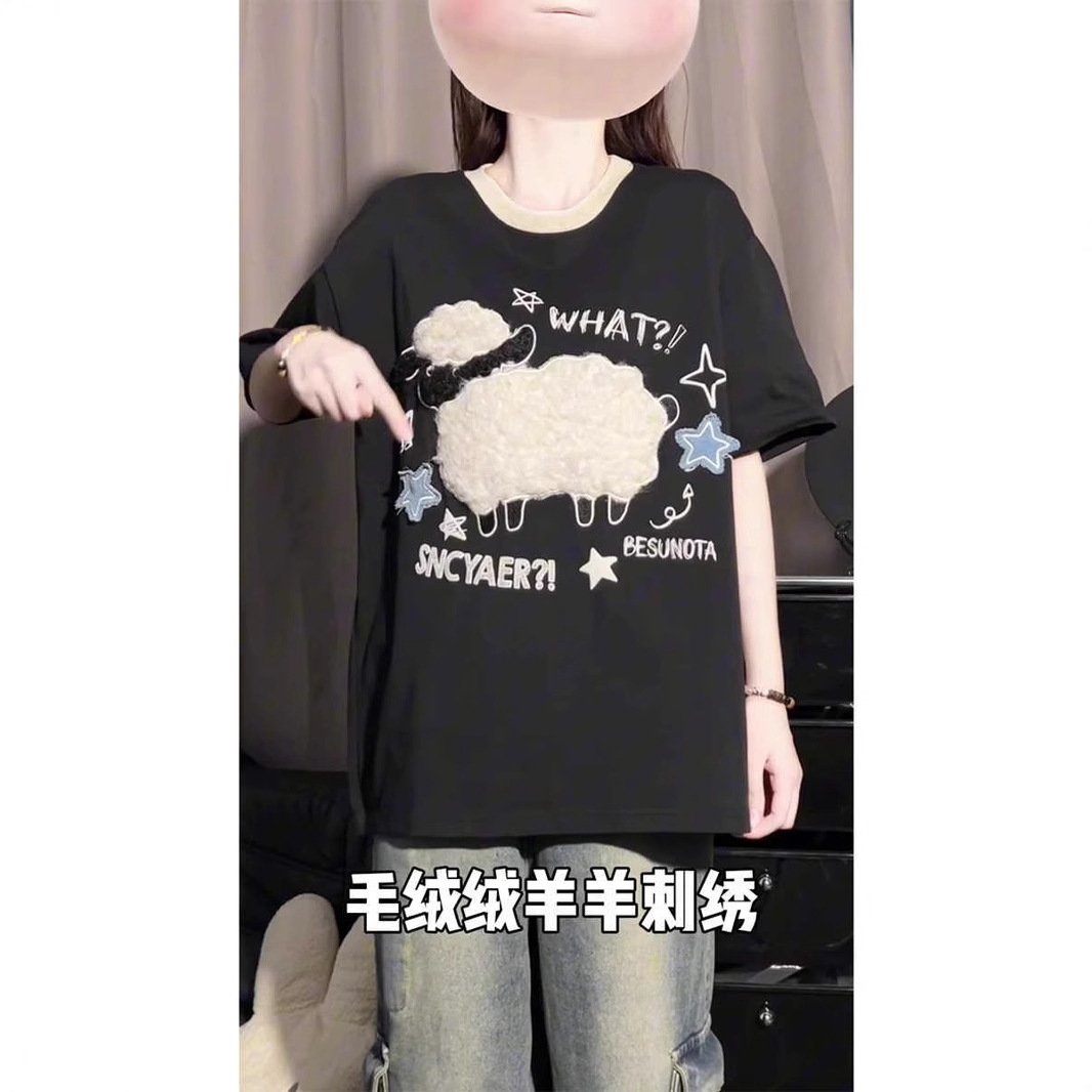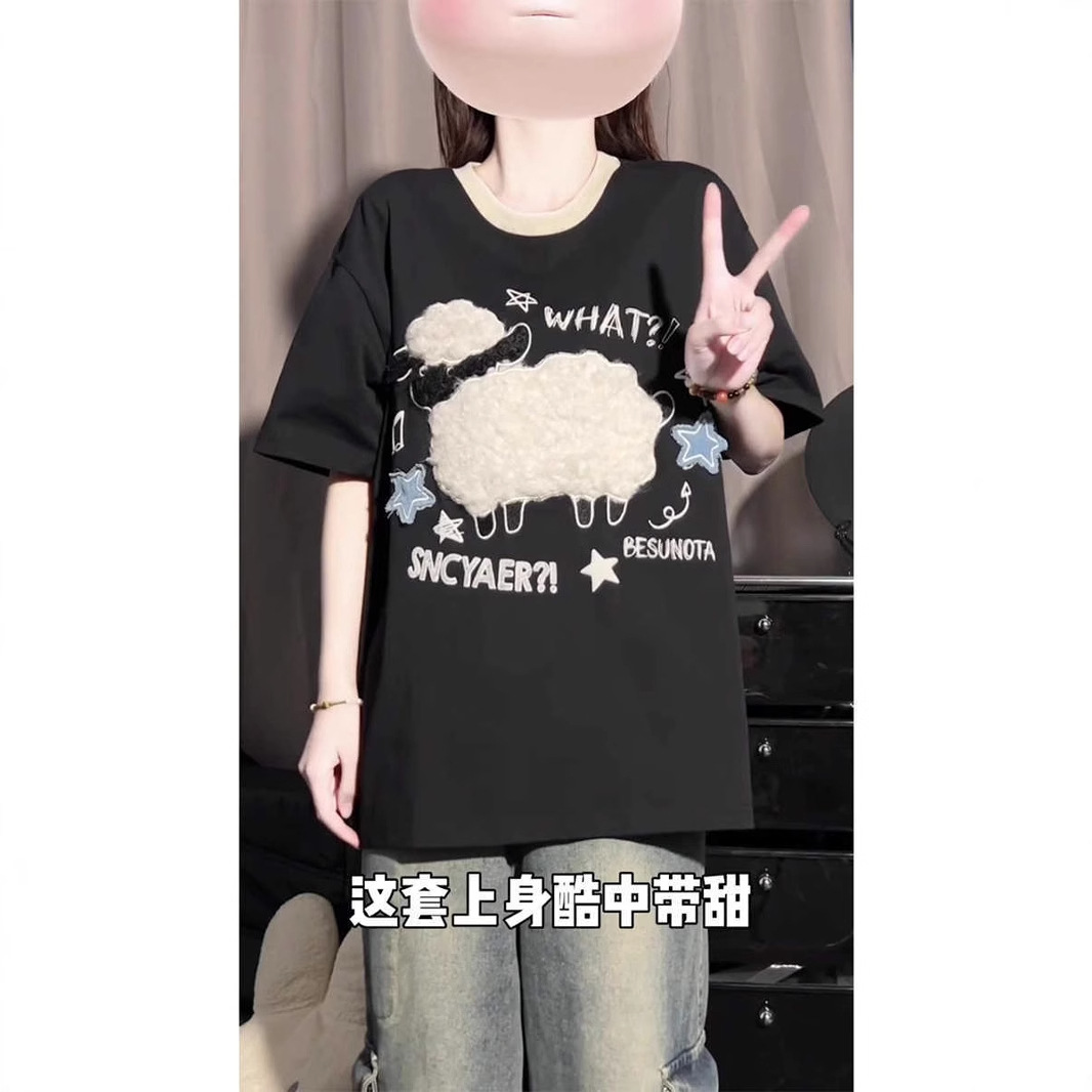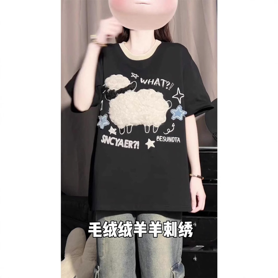 小羊刺绣纯棉短袖t恤女夏季宽松设计感半袖美式甜酷风潮牌上衣ins