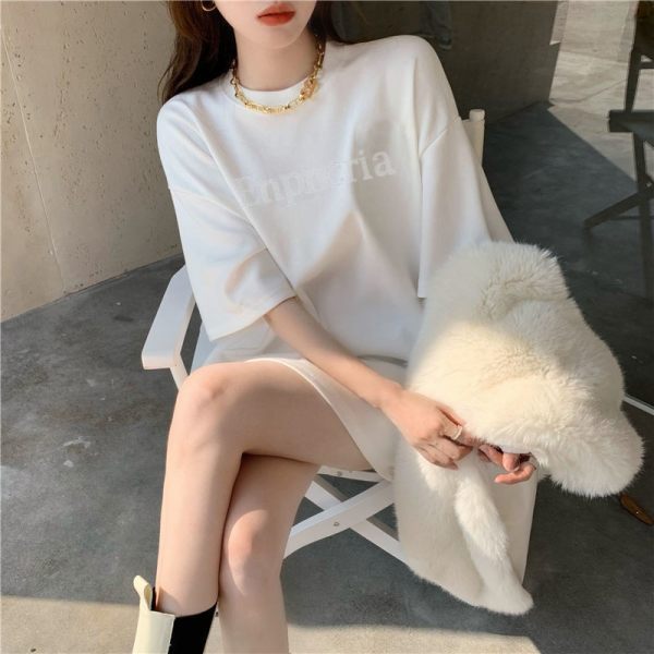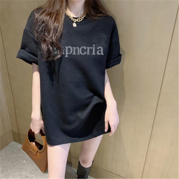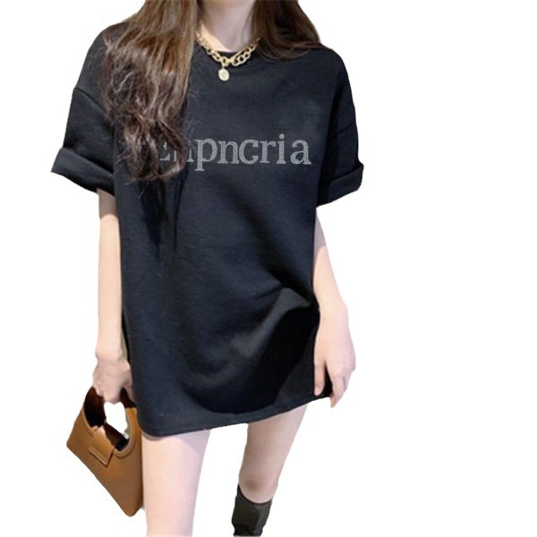 烫钻字母粉红色短袖T恤女秋季宽松中长款设计感打底上衣潮ins超火